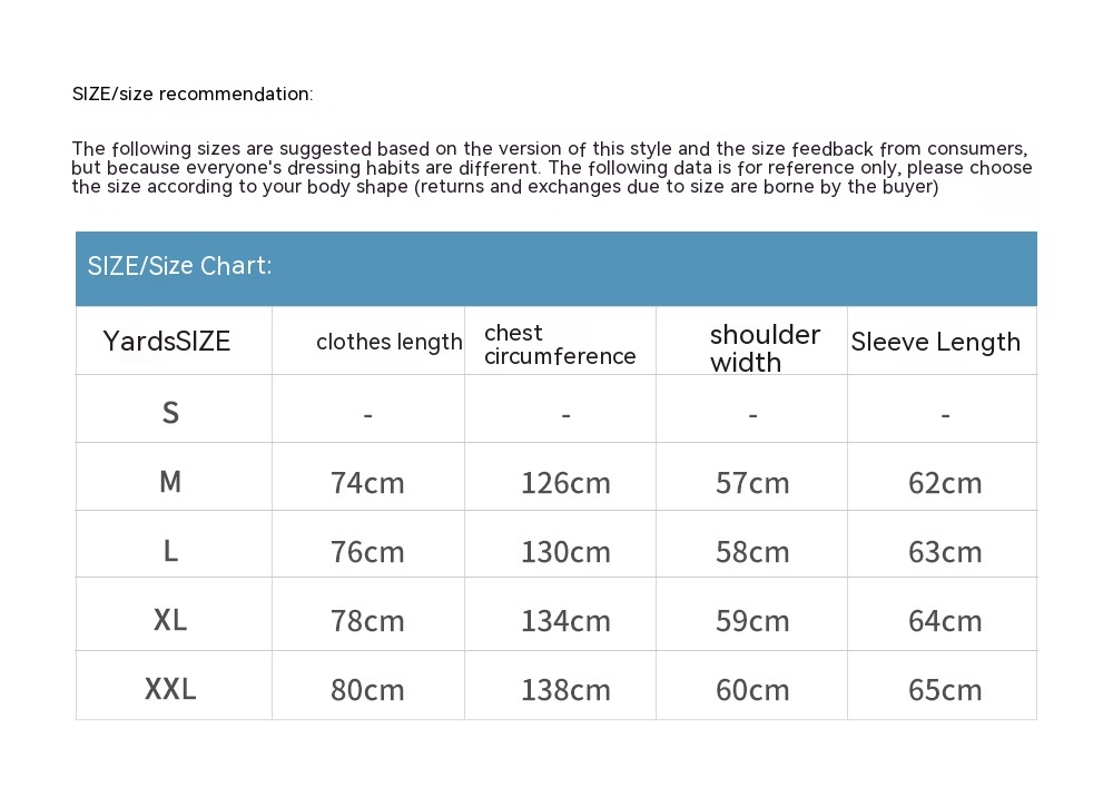 1. Asian sizes are 1 to 2 sizes smaller than European and American people. Choose the larger size if your size between two sizes. Please allow 2-3cm differences due to manual measurement. 2. Please check the size chart carefully before you buy the item, if you don't know how to choose size, please contact our customer service. 3.As you know, the different computers display colors differently, the color of the actual item may vary slightly from the following images.