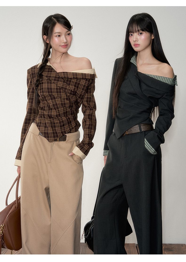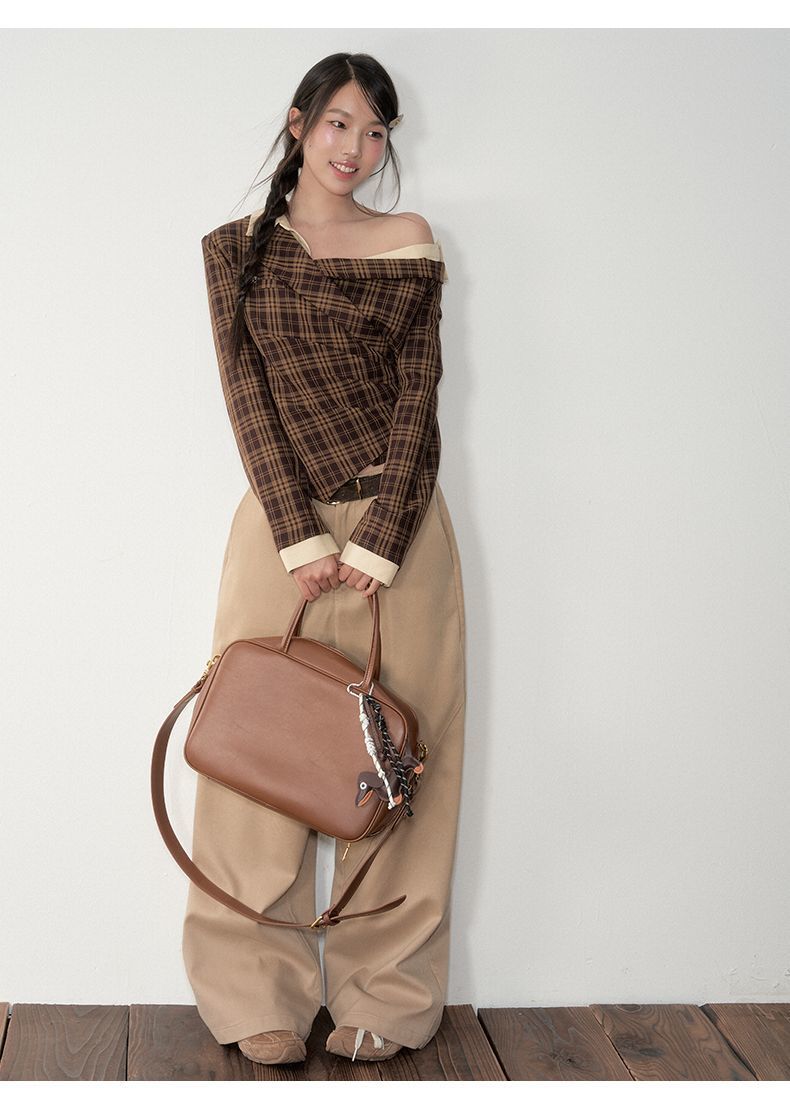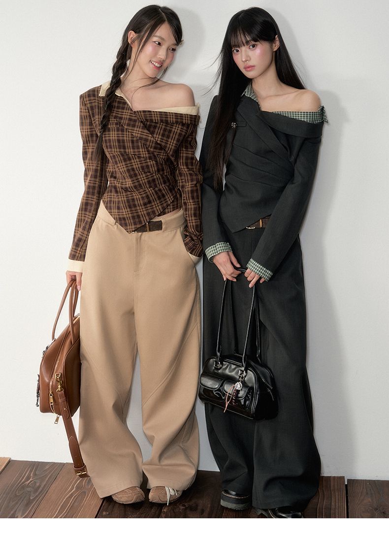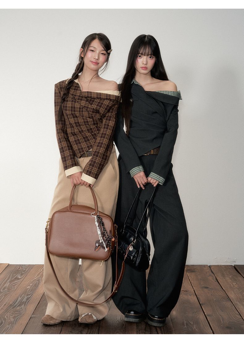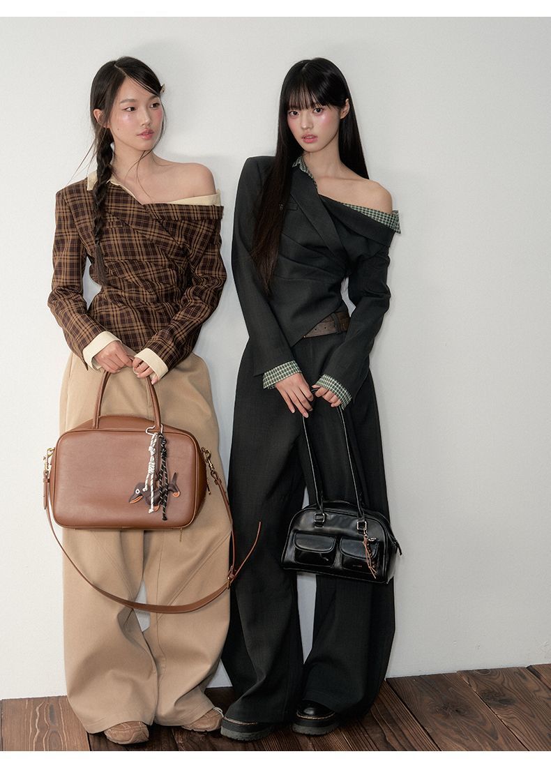 Colors: Dark Gray (includes brooch), Brown Plaid (includes brooch)