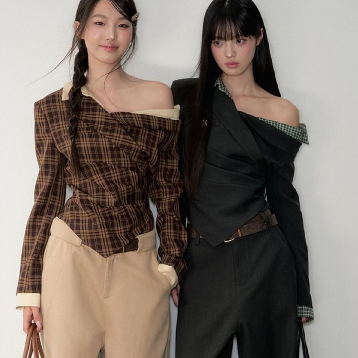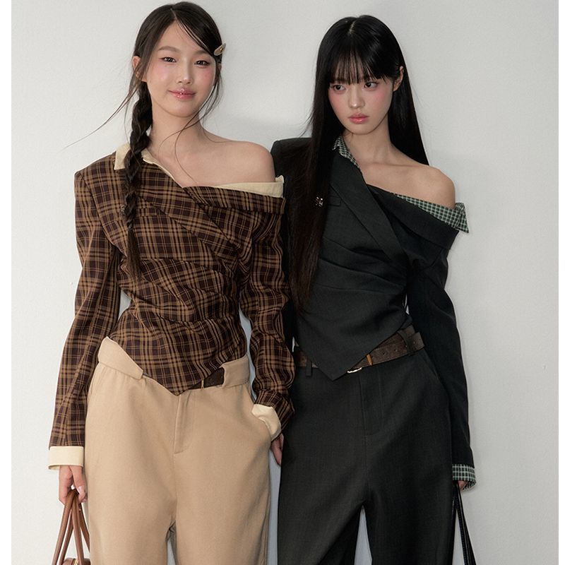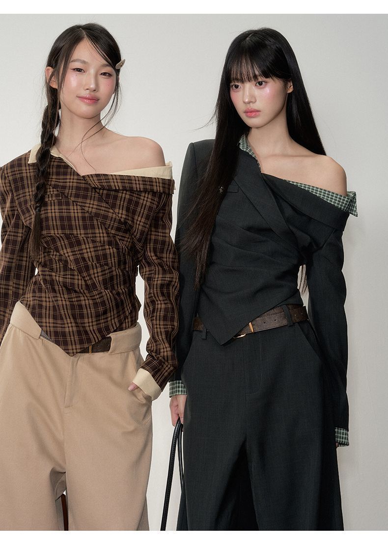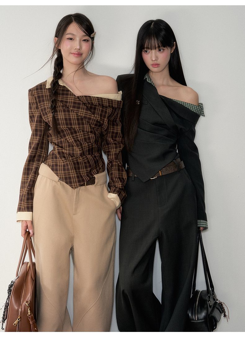 Colors: Dark Gray (includes brooch), Brown Plaid (includes brooch)
