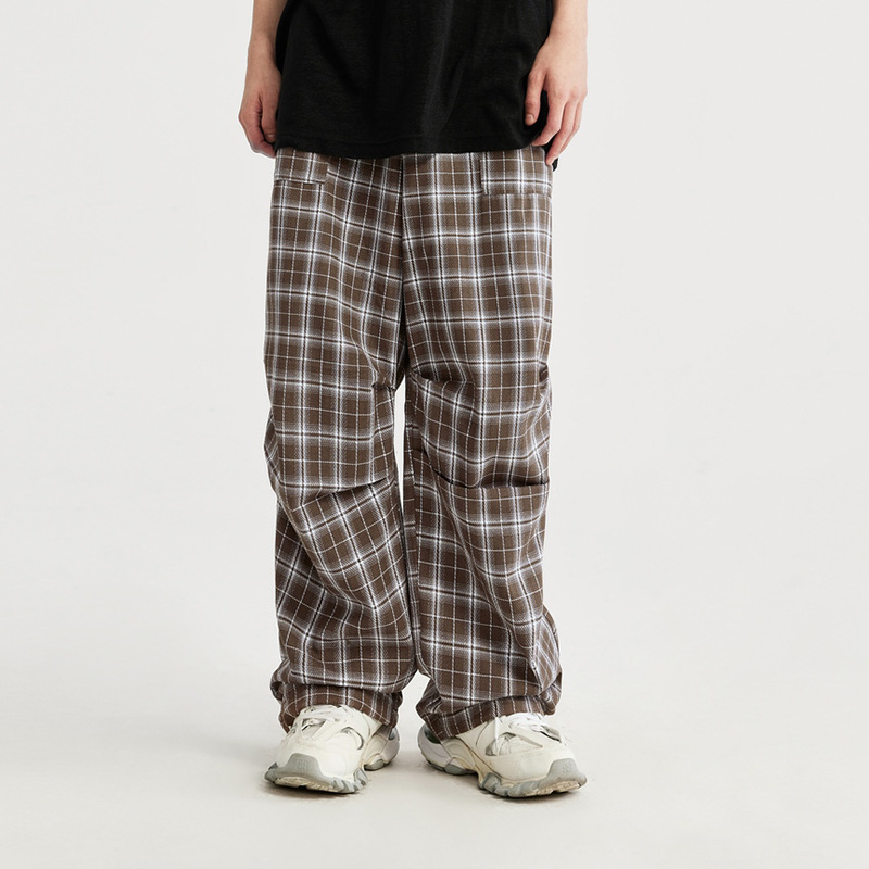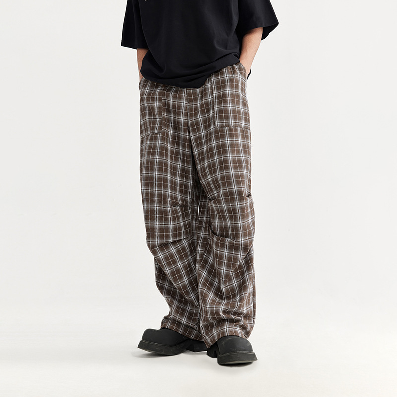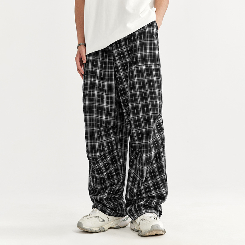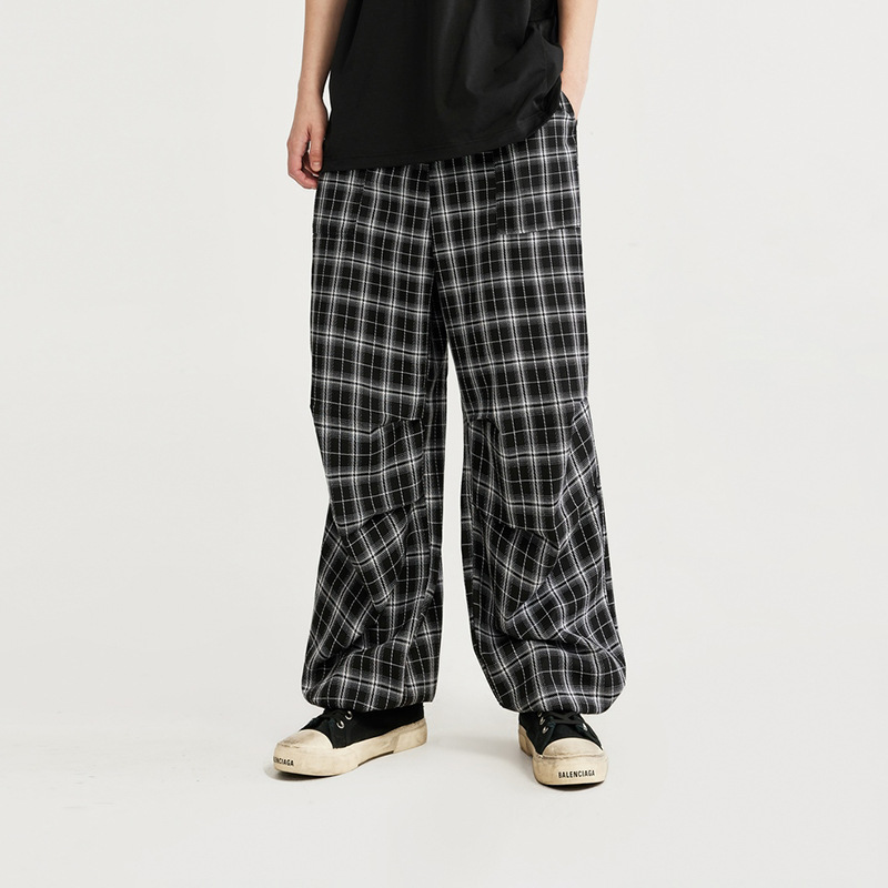 Plaid Parachute Wide-leg Pants Loose Casual Trousers