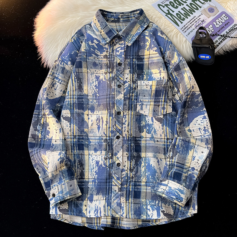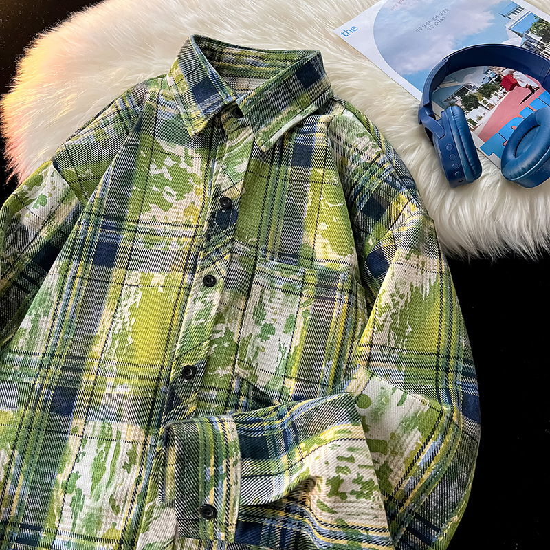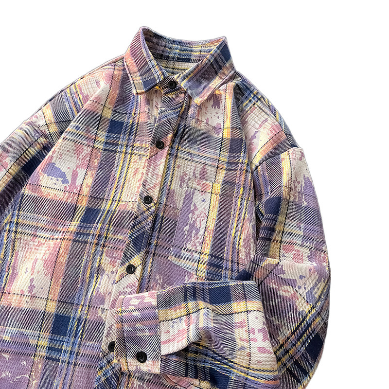 Plaid Shirt Printing And Dyeing Gradient Baggy Coat Shirt