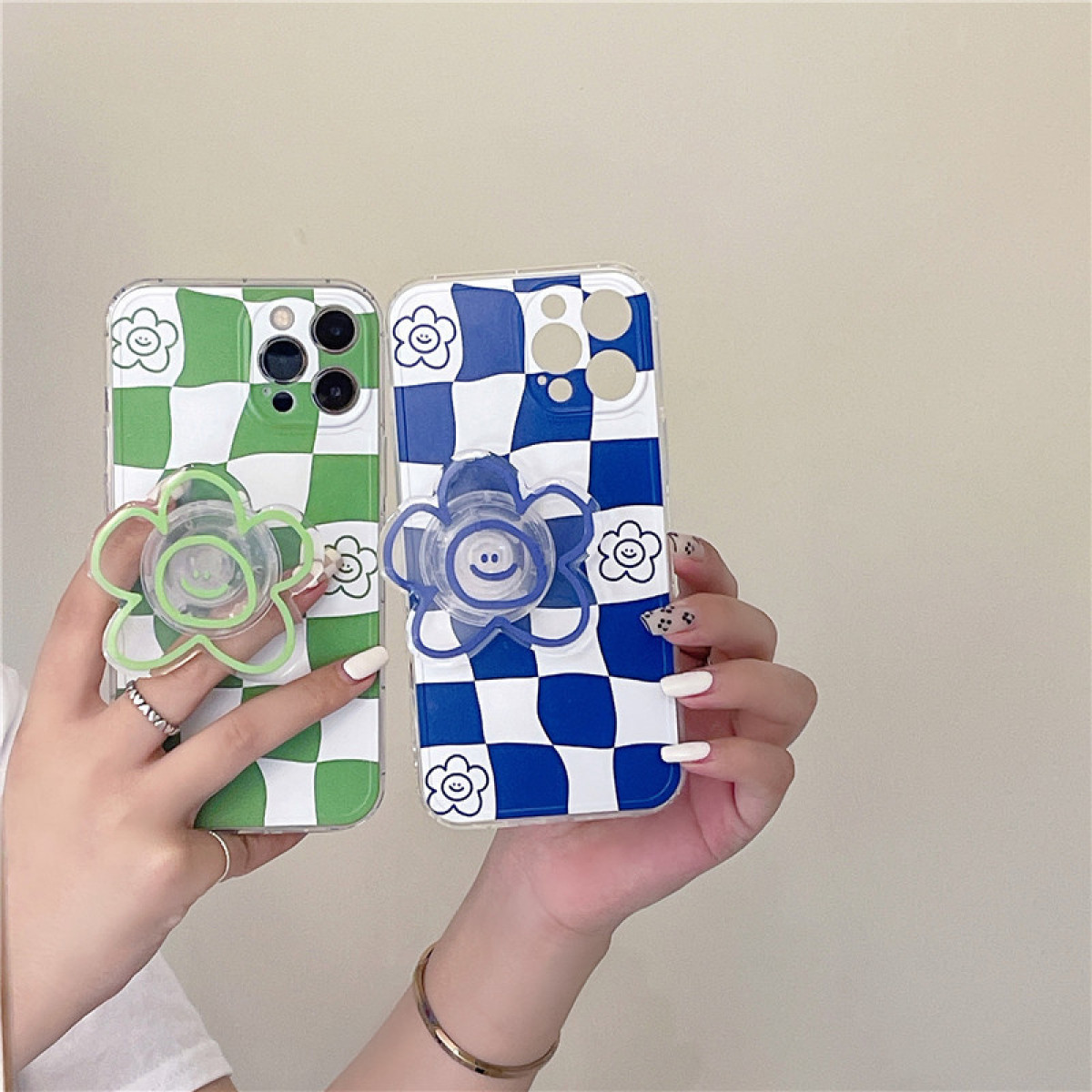 Color: white and blue plaid + blue smiley flower stand, white and green plaid + green smiley flower stand
