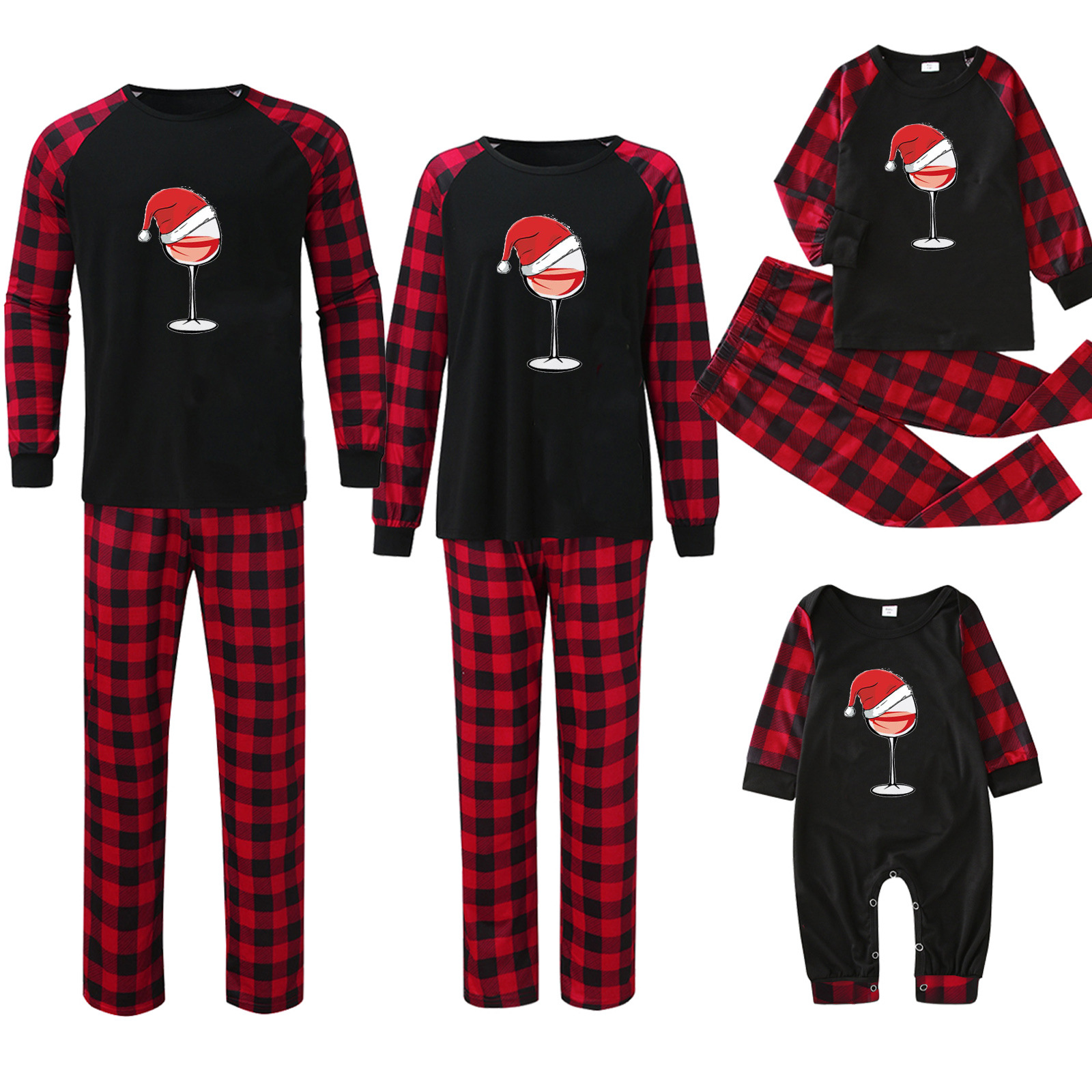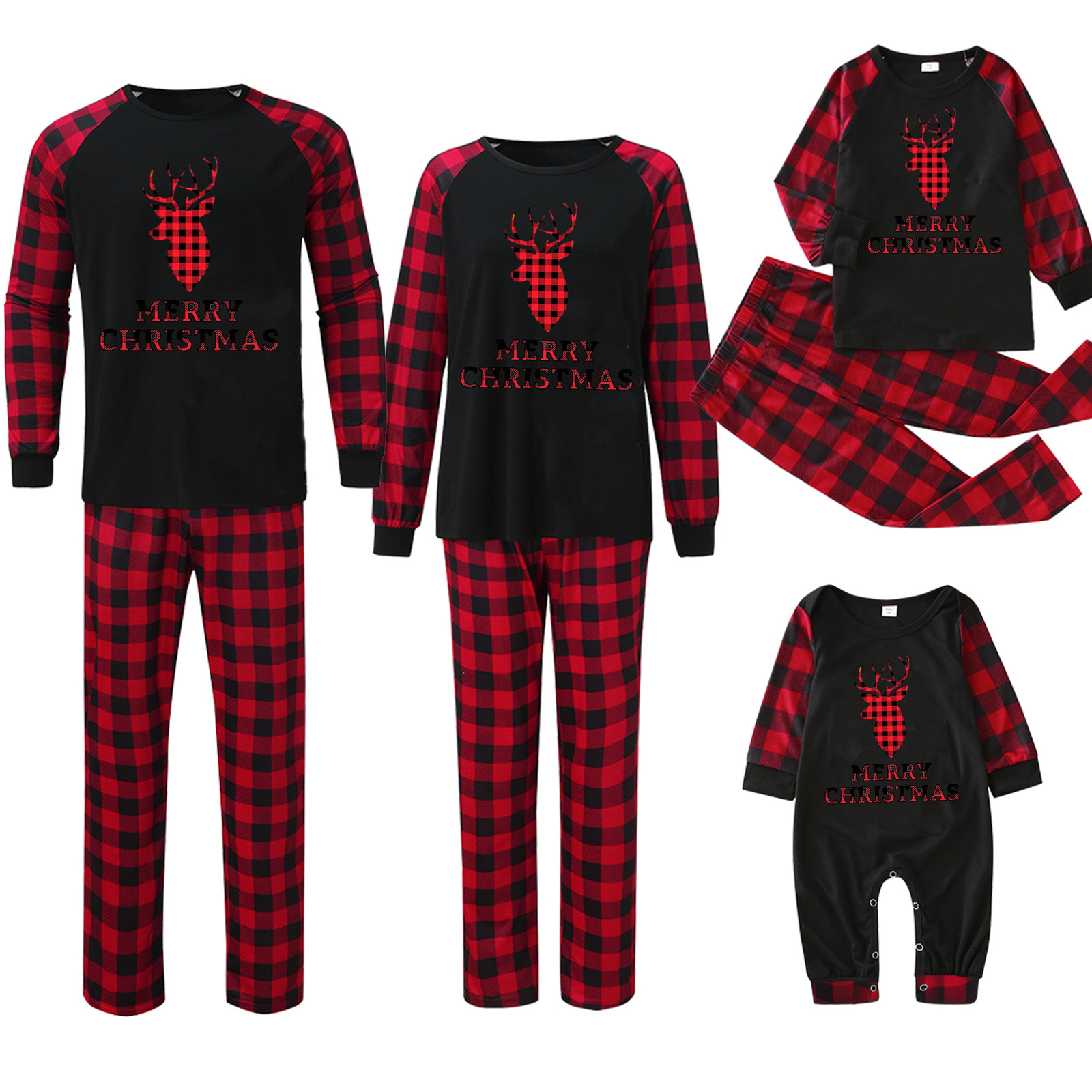 Plaid Stitching Printing Christmas Homewear Parent-child Suit