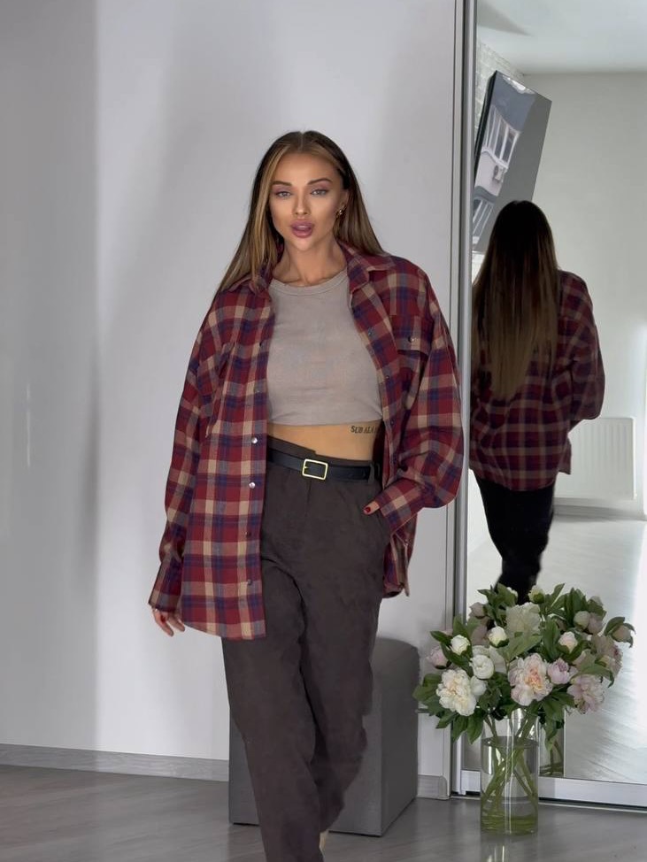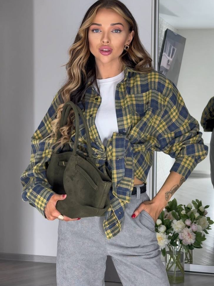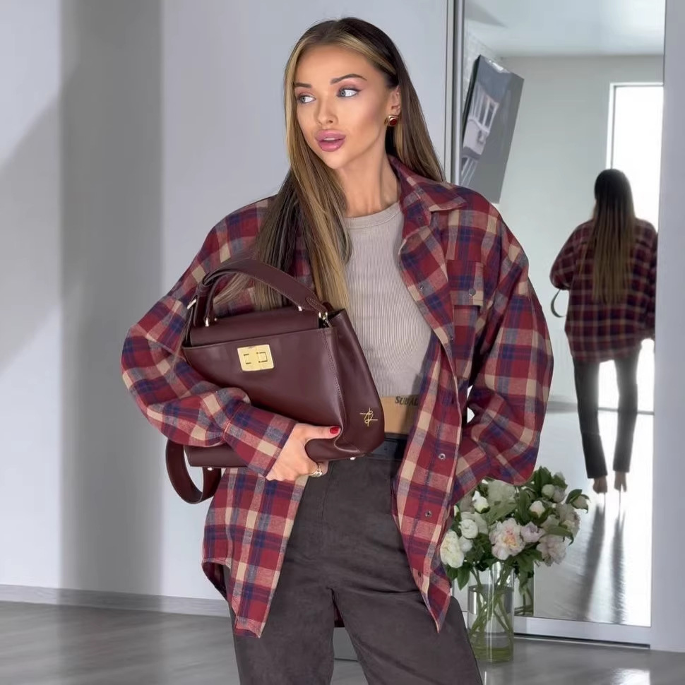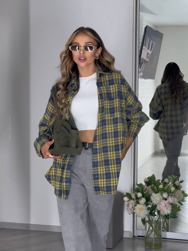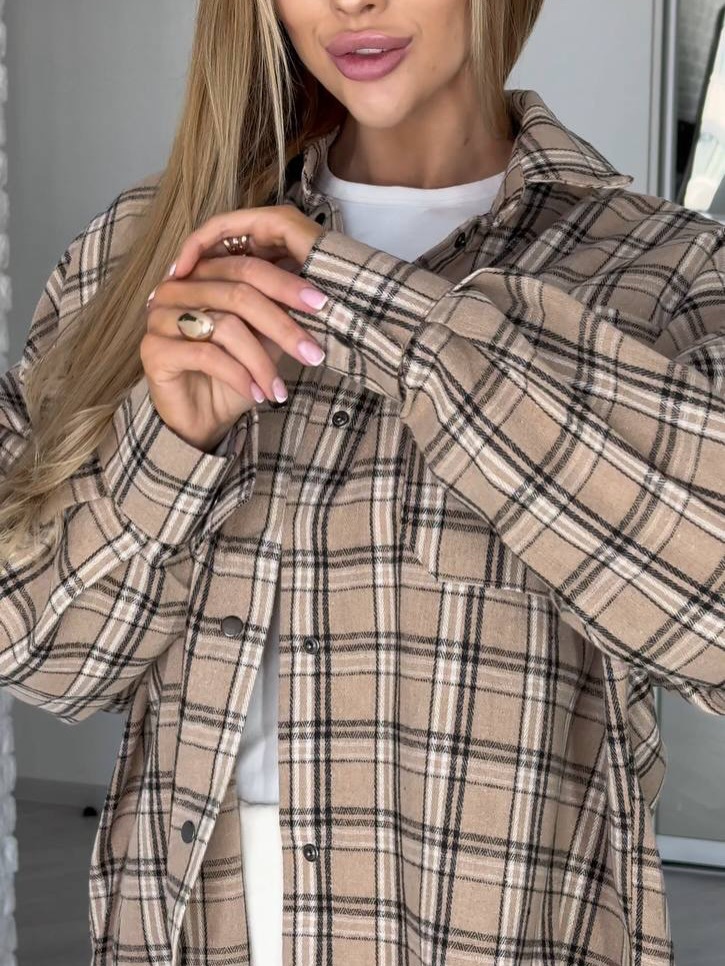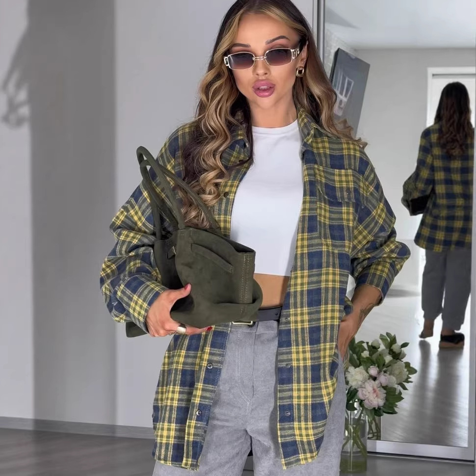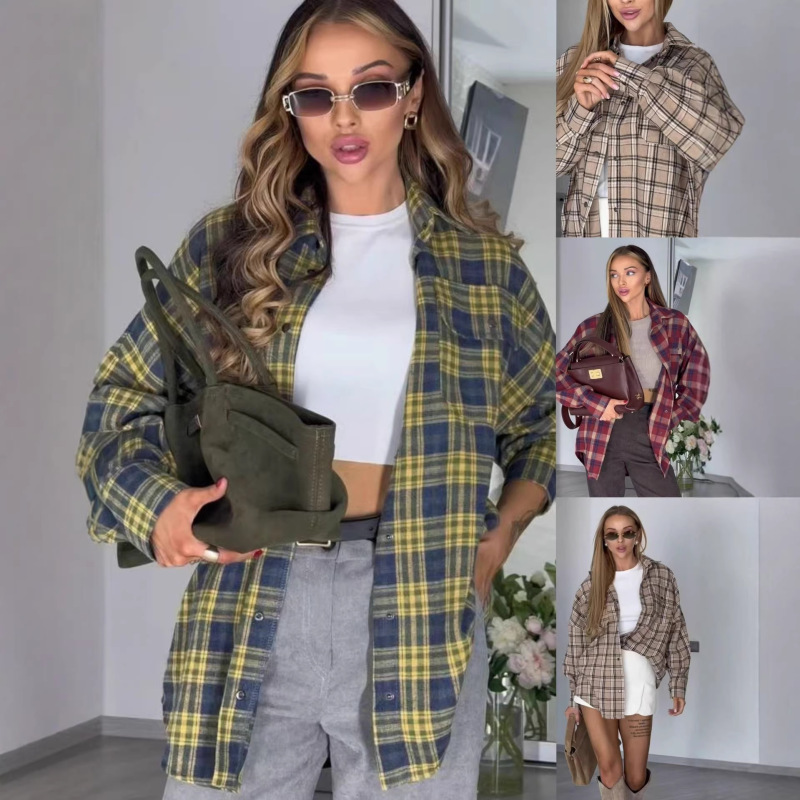 Trendy elements: Plaid, pockets, buttons