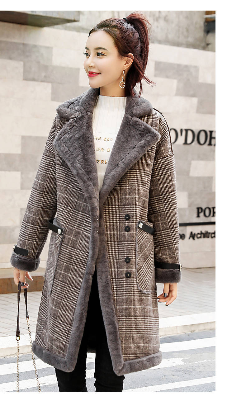Color: Plaid lamb woolen coat, brown [plus velvet thickening]