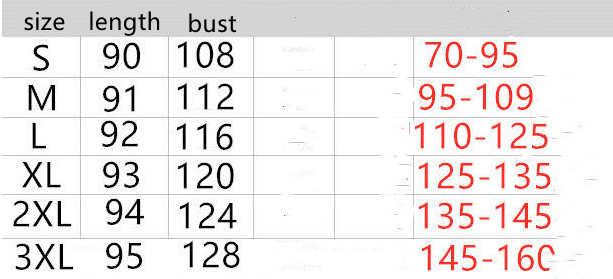 Size: S recommended below 70-95 kg, M recommended 95-110 kg, L recommended 110-125 kg, XL recommended 125-135 kg, 2XL recommended 135-145 kg, 3XL recommended 145-160 kg