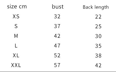 Size: Xs (recommended weight 1-3 kg), s (recommended weight 3-5 kg), m (recommended weight 5-8 kg), l (recommended weight 8-11 kg), xl (recommended weight 11-15 kg ), xxl (recommended weight 15-20 kg)