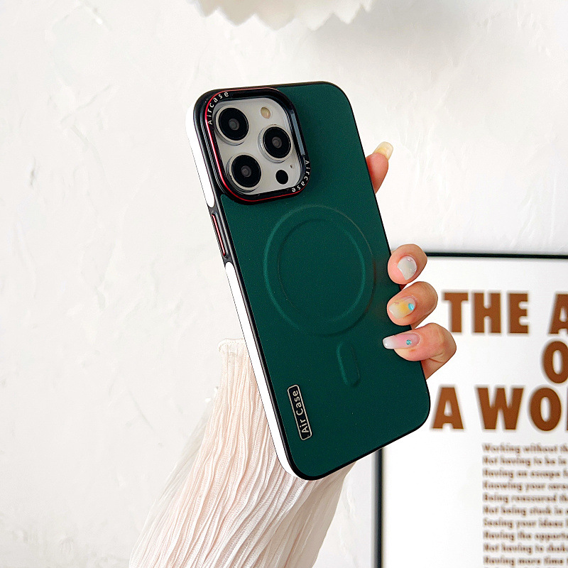 Plain Leather Phone Case Magnetic Suction Contrast Color Protective Cover