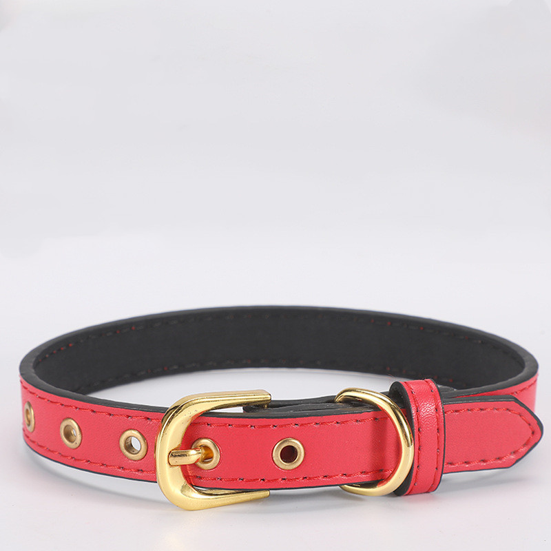 Plain Pet Collar Gold Buckle PU