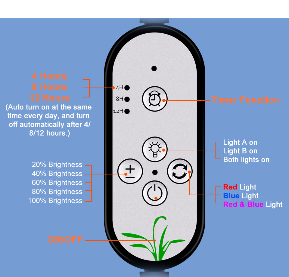 * With timer function. According to your needs, it can time 4 hours, 8 hours, 12 hours lighting time.