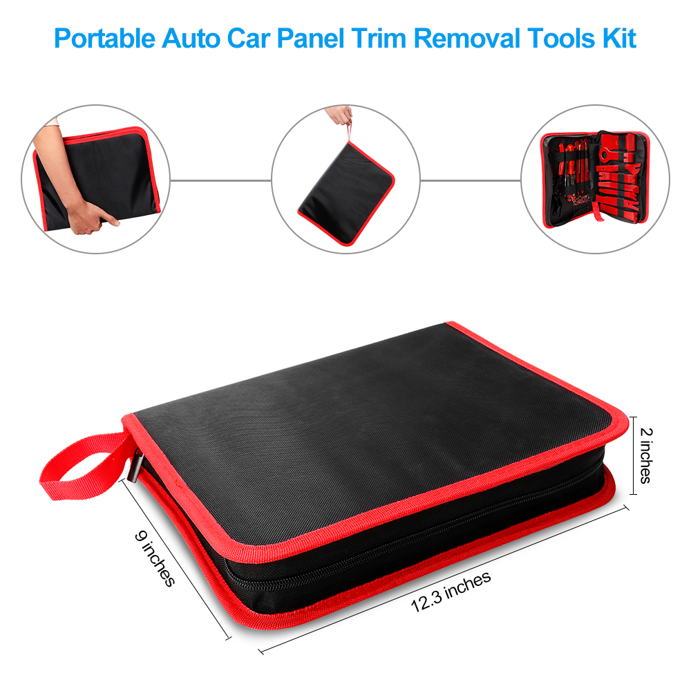 5. Package Include :11 pcs trim removal tools, 6 pcs stereo key removal tools, 3 pcs wire terminal removal tools, 2 pcs U-shaped stereo removal tools, 1 pcs clip plier, 1 pcs fastener remover, 4 pcs precision hook picks and a portable storage bag.