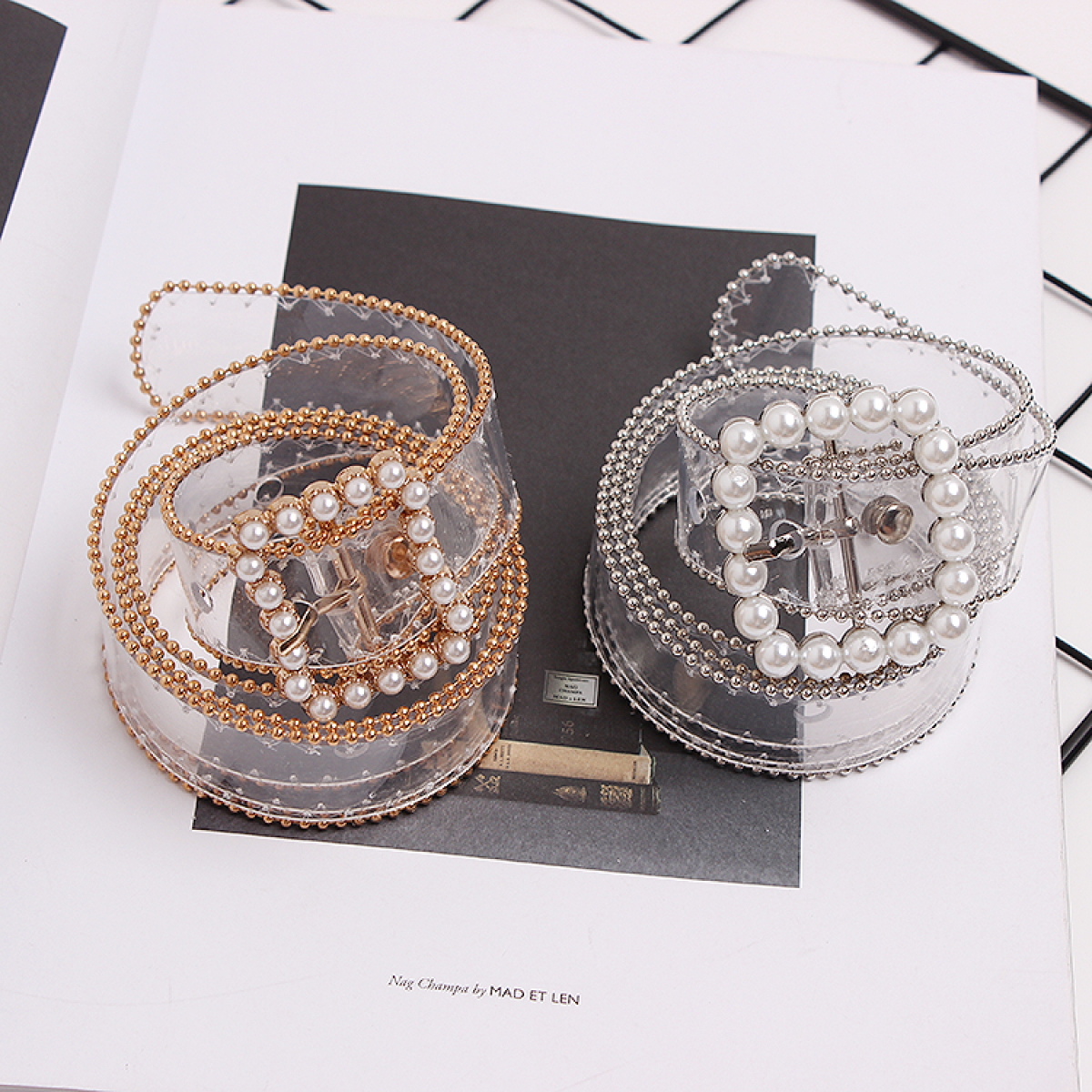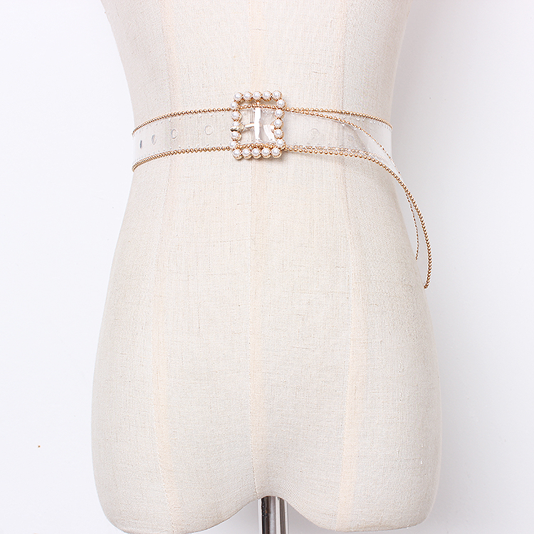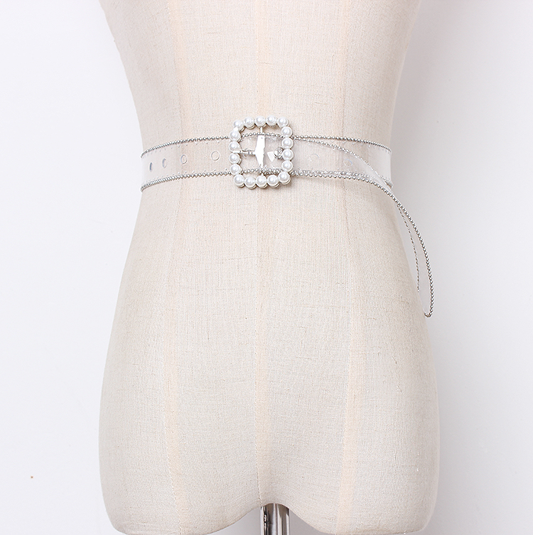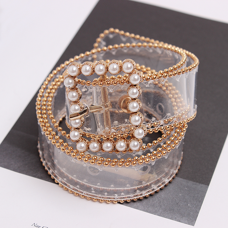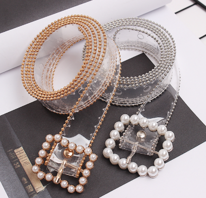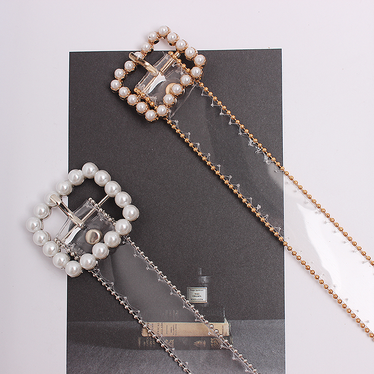 Color classification: gold, silverMaterial: PVCSilver Pearl Buckle: Belt length 104 width 2.5Golden Pearl Buckle: Belt length 102 width 2.5