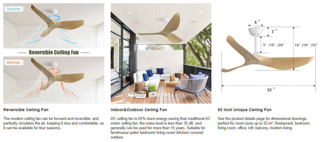 Product Name:52 Inch Indoor Ceiling Fan No Light With 6 Speed Remote Control 3 ABS Blade Reversible DC Motor For Home