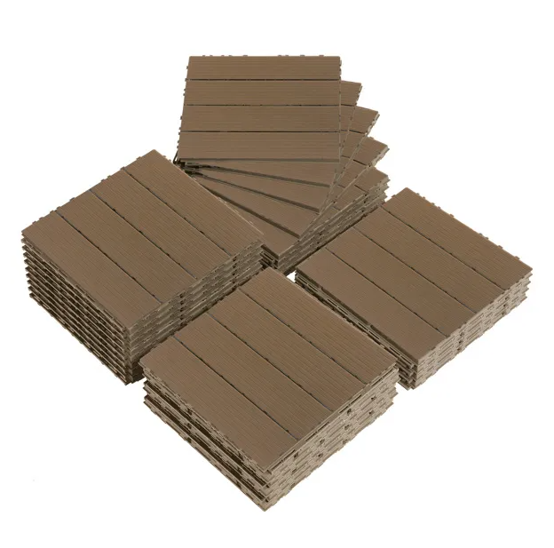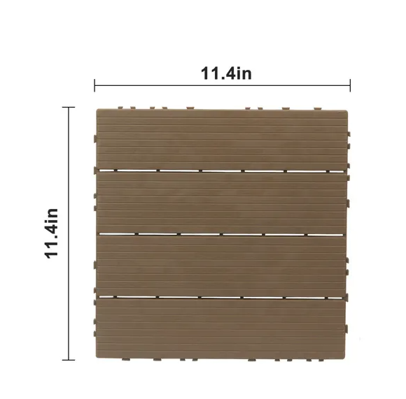 Revitalize your outdoor area with our Plastic Interlocking Deck Tiles. These versatile tiles are designed to elevate the functionality and aesthetics of your patio, porch, balcony, or poolside area. Crafted from high hardness plastic, these interlocking tiles are built to endure various weather conditions, ensuring long-lasting performance without any signs of fading or splintering. Classic stripe design adds a touch of elegance to your outdoor environment. Installation is a breeze with the innovative interlocking design, allowing you to quickly enjoy your new flooring. With non-slip pads for enhanced safety and a superior water drainage system to keep your space clean and dry, these deck tiles are the perfect choice for a hassle-free outdoor upgrade.