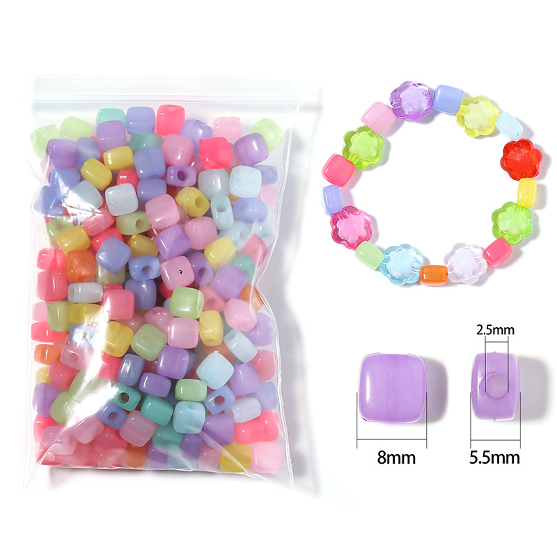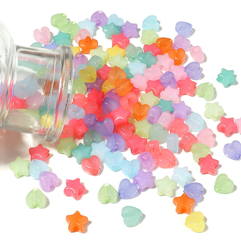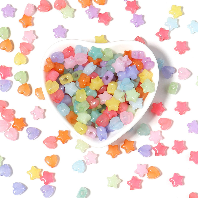Color: jelly color flat round beads, jelly color square beads, jelly color five-pointed star beads, jelly color love beads