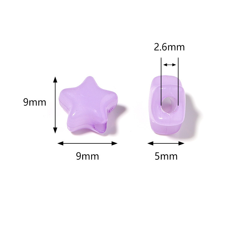Size:Flat round beads, diameter about 8.5, thickness about 5.5, aperture about 2.5,Square beads, diameter about 8mm, thickness about 5.5, aperture about 2.5,Five-pointed star beads, diameter about 9mm, thickness about 5mm, aperture about 2.6mm,Heart beads, diameter about 8mm, thickness about 5mm, aperture about 3mm,