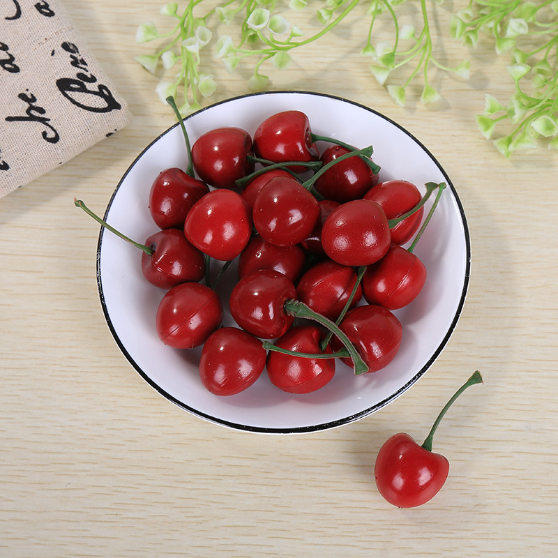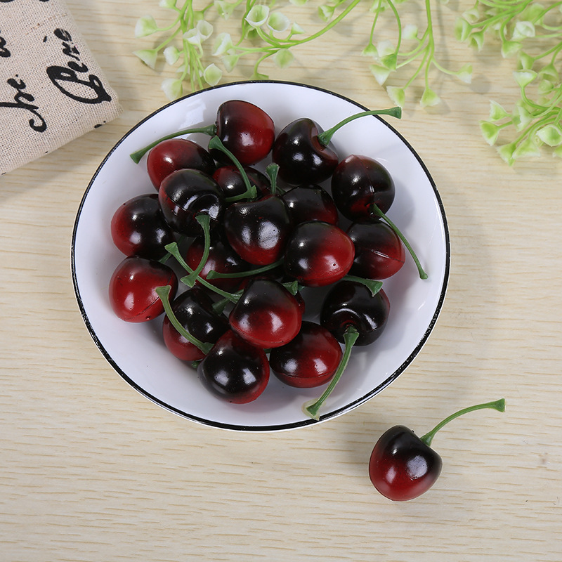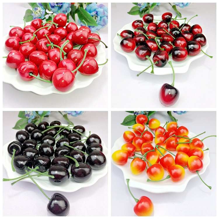 Color: plastic red and yellow cherries, plastic big red cherries, plastic double red cherries, plastic purple black cherries