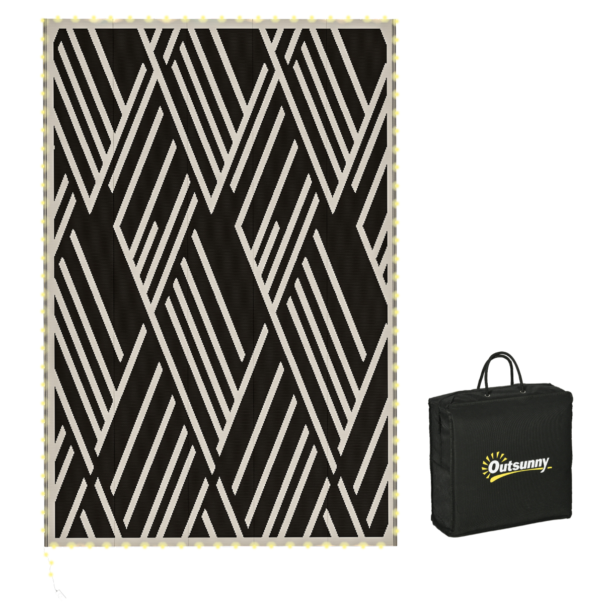 Transform your garden into a cosy haven with the Outdoor Rug, complete with enchanting LED string lights. This reversible garden carpet adds a touch of magic to any outdoor space, ensuring style and function. Water-resistant and a breeze to clean, it's suitable for all your outdoor adventures. Plus, it's foldable and comes with a handy bag, making it the quintessential companion for on-the-go relaxation.