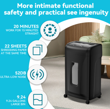 Product Name:Large Commercial Heavy Duty 22-Sheet High Security Paper Shredder with 9.24 Gallons Pullout Waste Bin