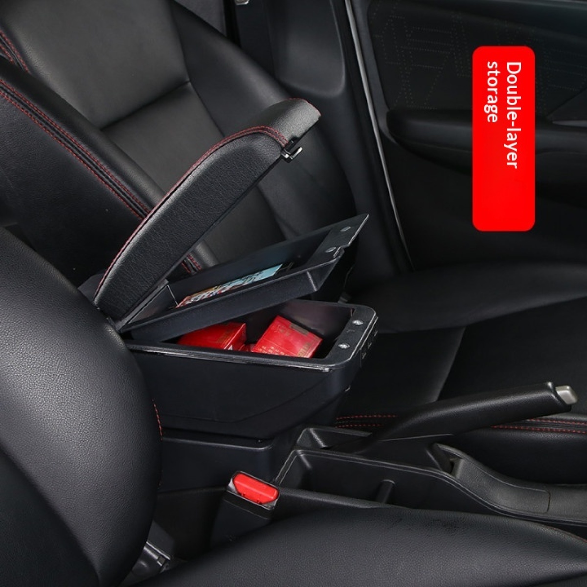 Product information:Style: (double sliding [black red line])Material: ABS+ leatherPacking list:Handbag *1