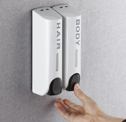 Plastic Wall Mount Soap Dispenser Black Bathroom Shower Shampoo Liquid Dispenser Set Hotel Mall Kitchen Soap Bottle 350ml