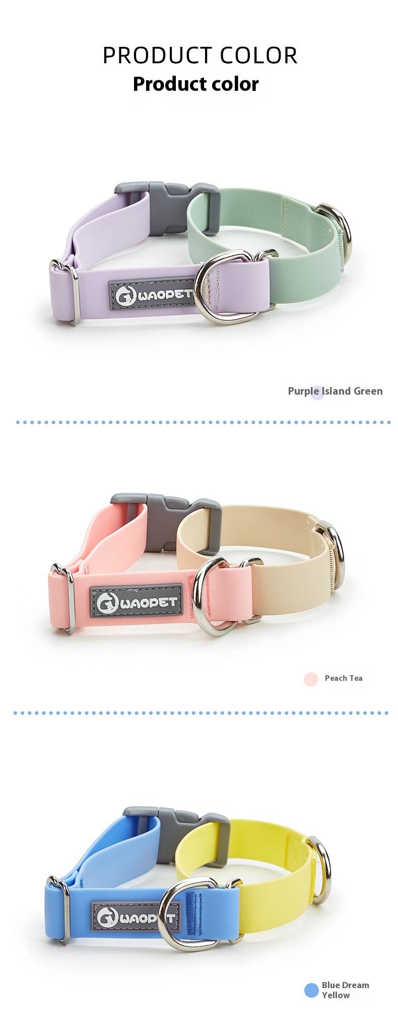 Color: collar [Blue Dream yellow], collar [Purple Island Green], collar [peach wood tea], hand holding rope [Blue Dream yellow], hand holding rope [Purple Island Green]], hand holding rope [peach tea]], Blue Dream yellow suit, mauve jade green suit, peach tea set suit