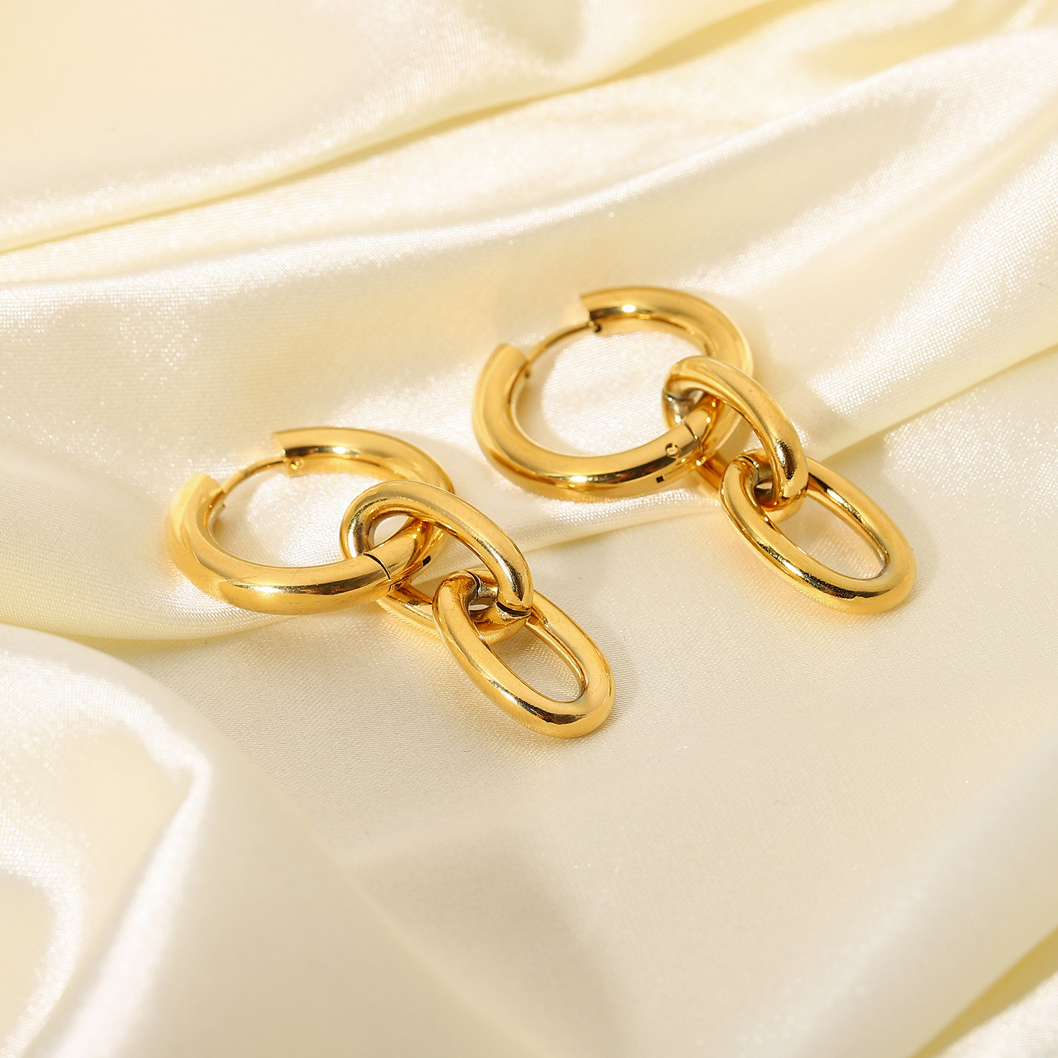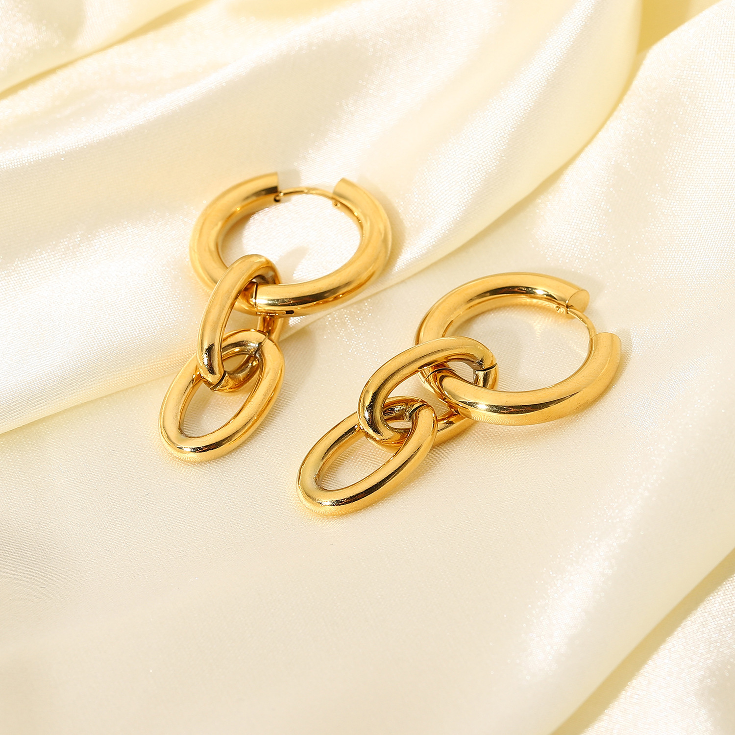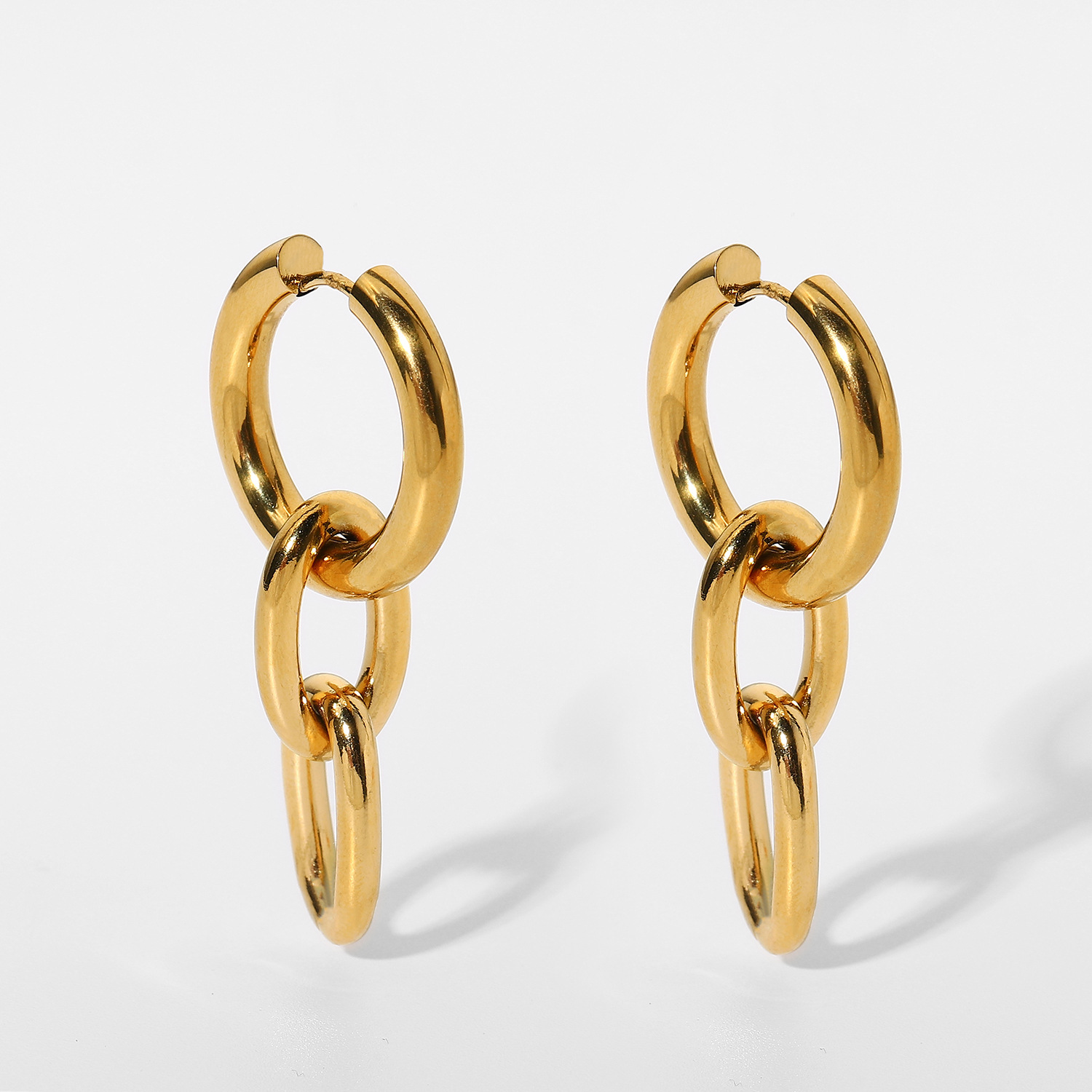 Plated Stainless Steel Pendant With Large Gold Chain Earrings