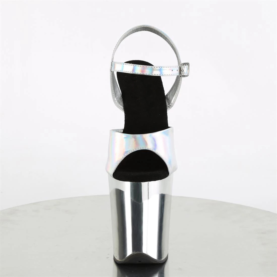 Size: 34 and 46Vamp material :PU patent leatherSole material: ABSToe: Pointed tipWith high: 20 cm