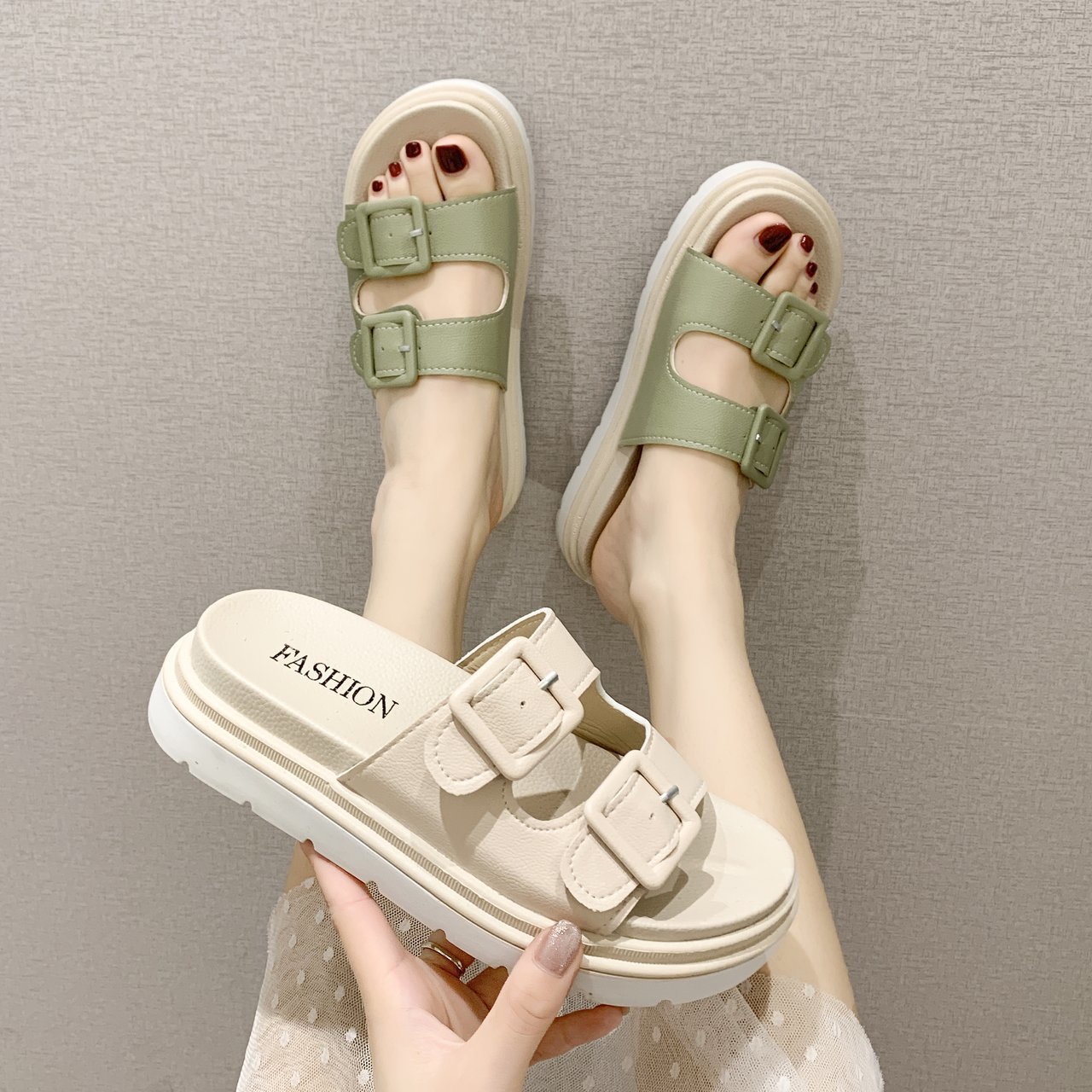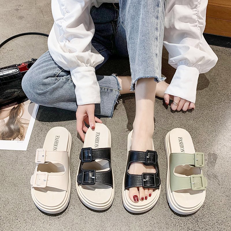 Platform Slippers Sandals Women Buckle Slippers Thick Sole Sandals Women Shoes Summer Leisure Hollow Open Toe Slides