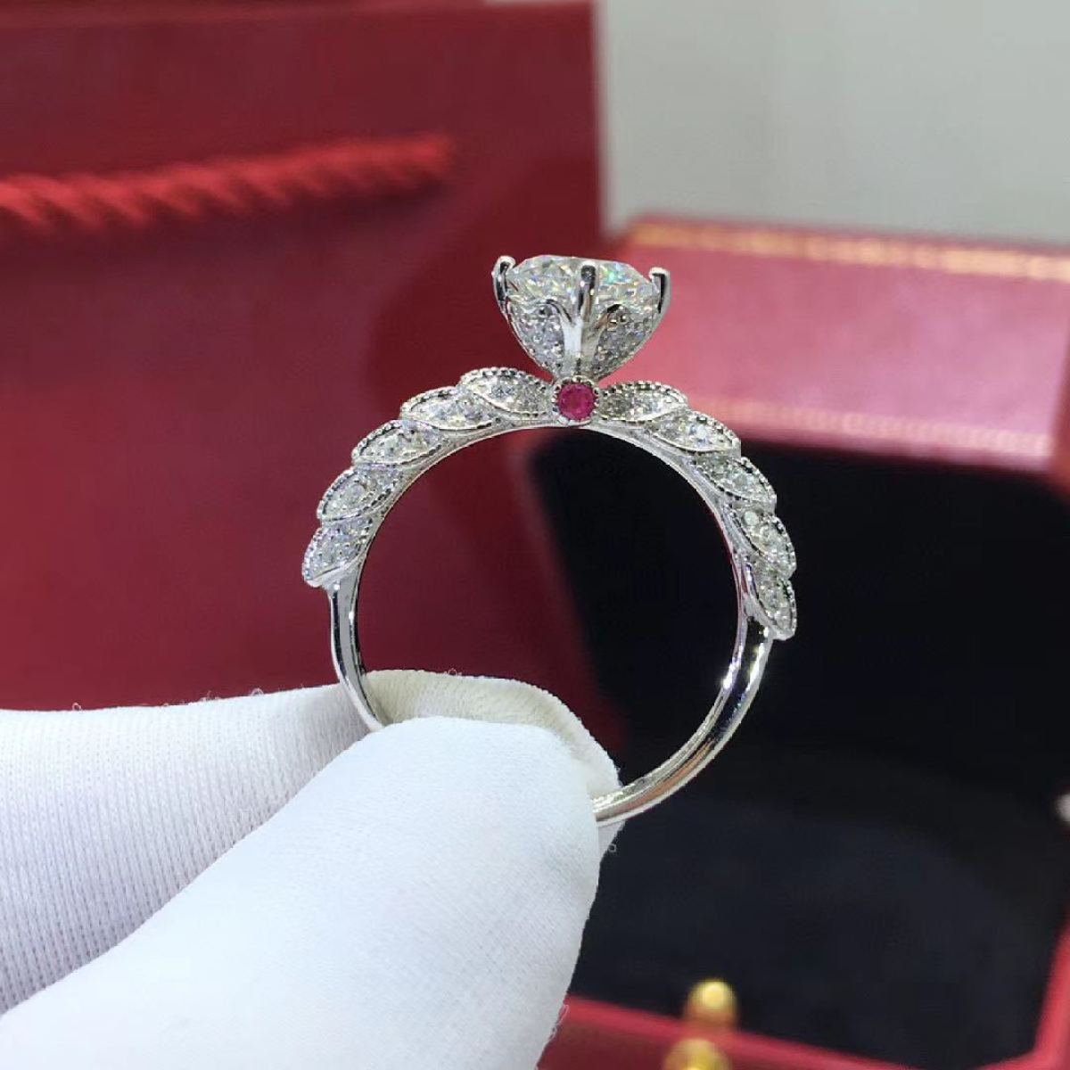 Color: 2 Carat [8 mm] White Diamond, 2 Carat [8 mm] Red Diamond