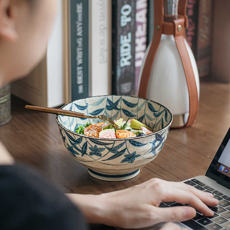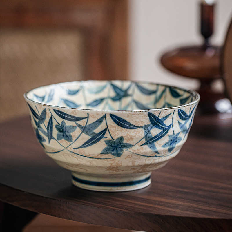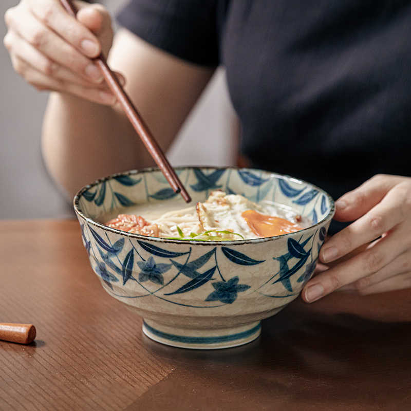 Platycodon Grandiflorum High Foot Noodle Bowl Underglaze Porcelain Soup Bowl