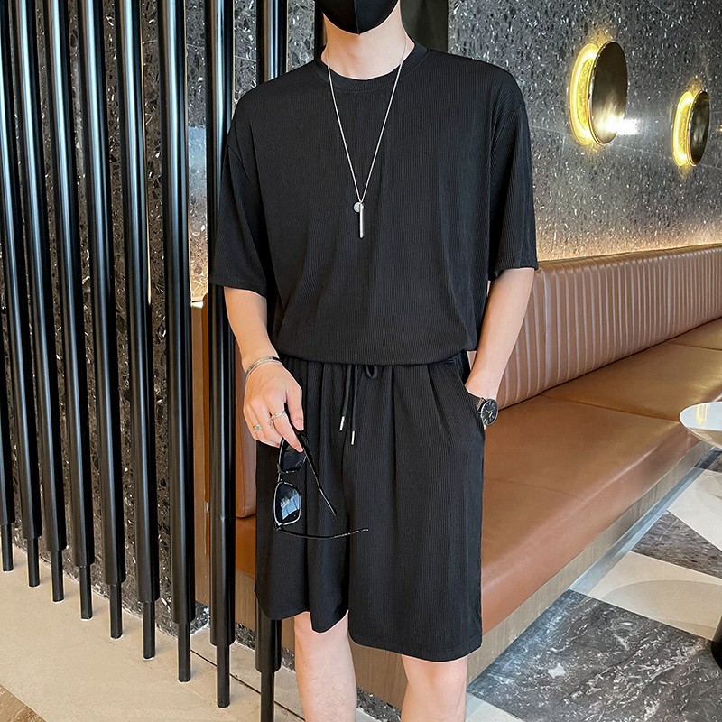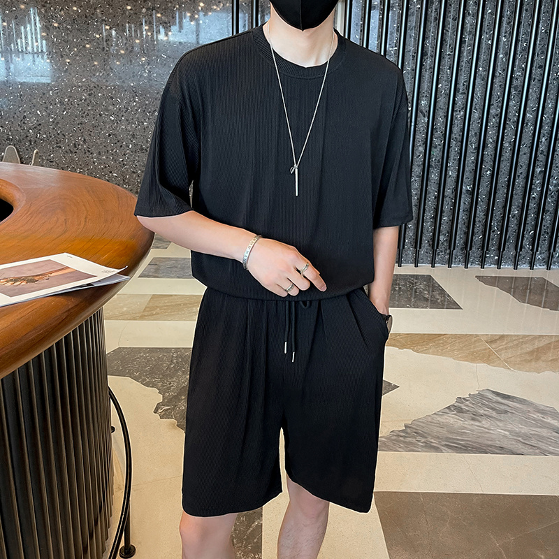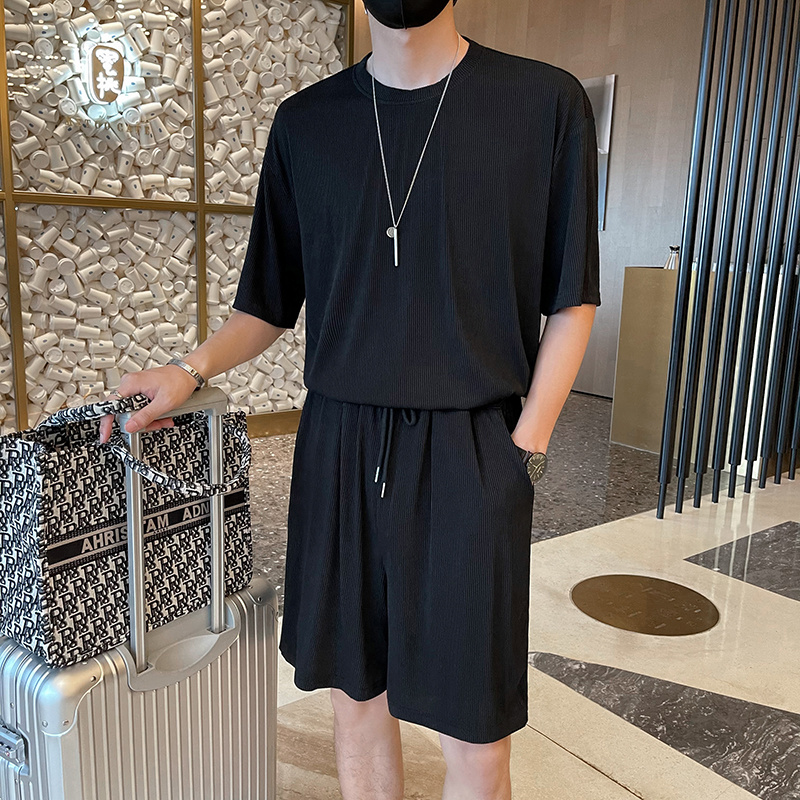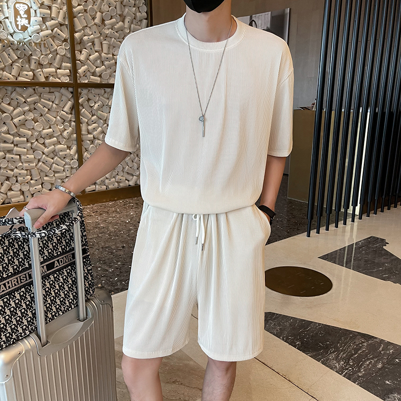 Pleated Loose Drop Ice Silk T-shirt Short Sleeve Casual Sports Suit