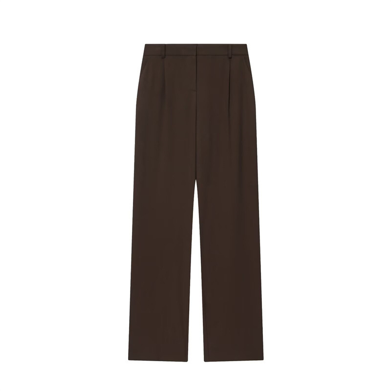 Pleated Padded Shoulder With Straight-leg Pants Coat