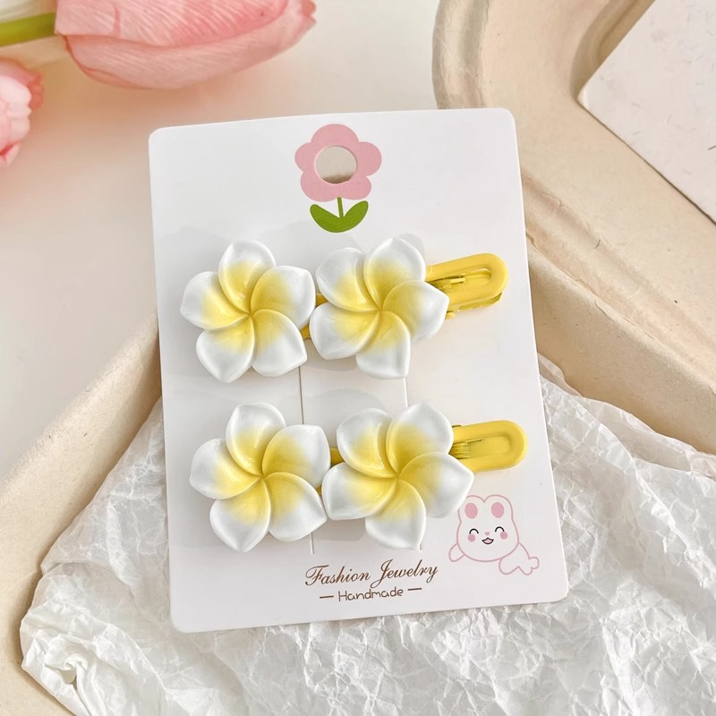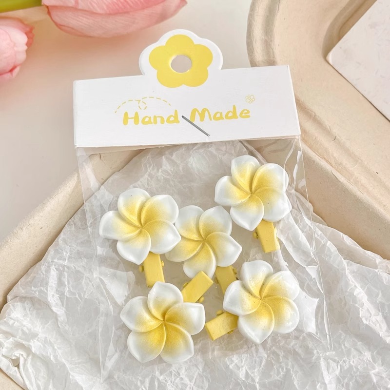Color: 2 1 # Plumeria rubra big side clips, 5 2 # Plumeria rubra hair bands, 2 3 # Plumeria rubra barrettes, 2 4 # Plumeria rubra hair bands, 5# Small Plumeria rubra barrettes, 6# Small Plumeria rubra barrettes 2
