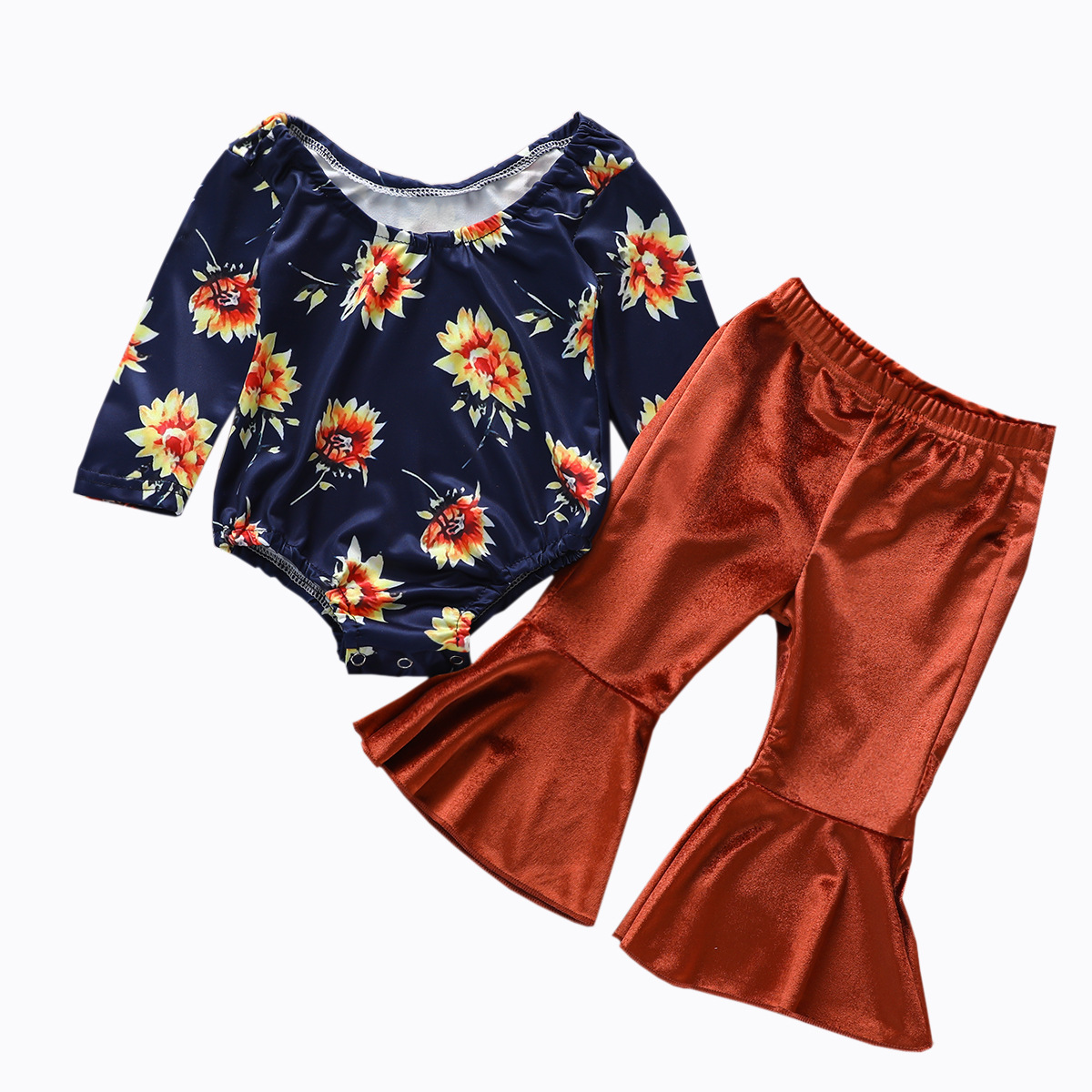Plus brown yellow flared pants suit