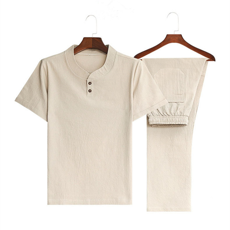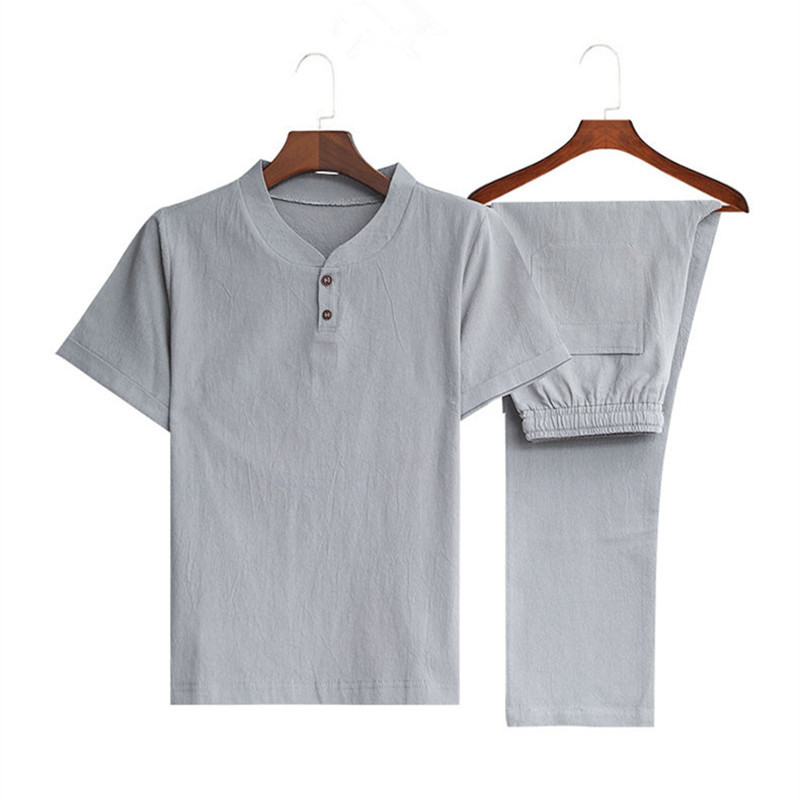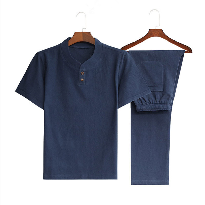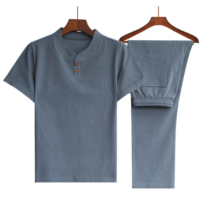 Plus Size Chinese Style Men's Cotton and Linen Trendy V-neck