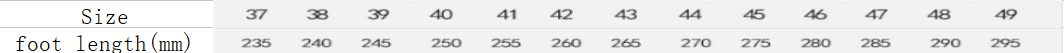 Size: 37, 38, 39, 40, 41, 42, 43, 44, 45, 46, 47, 48, 49
