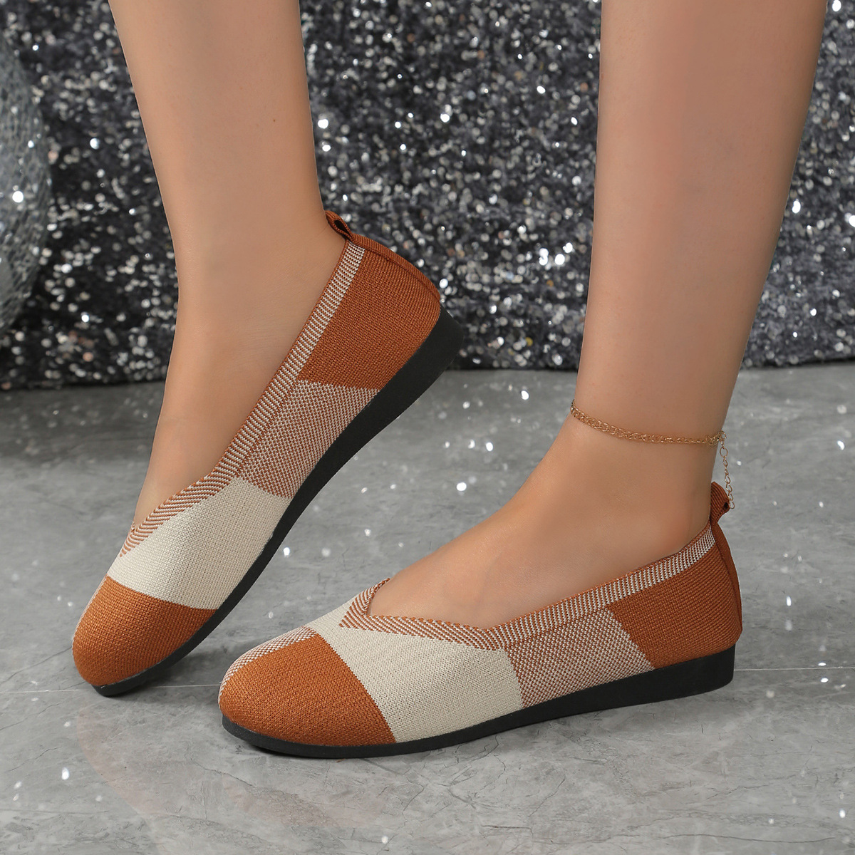 Plus Size Flyknit Color Matching Round Head Leisure Shoes