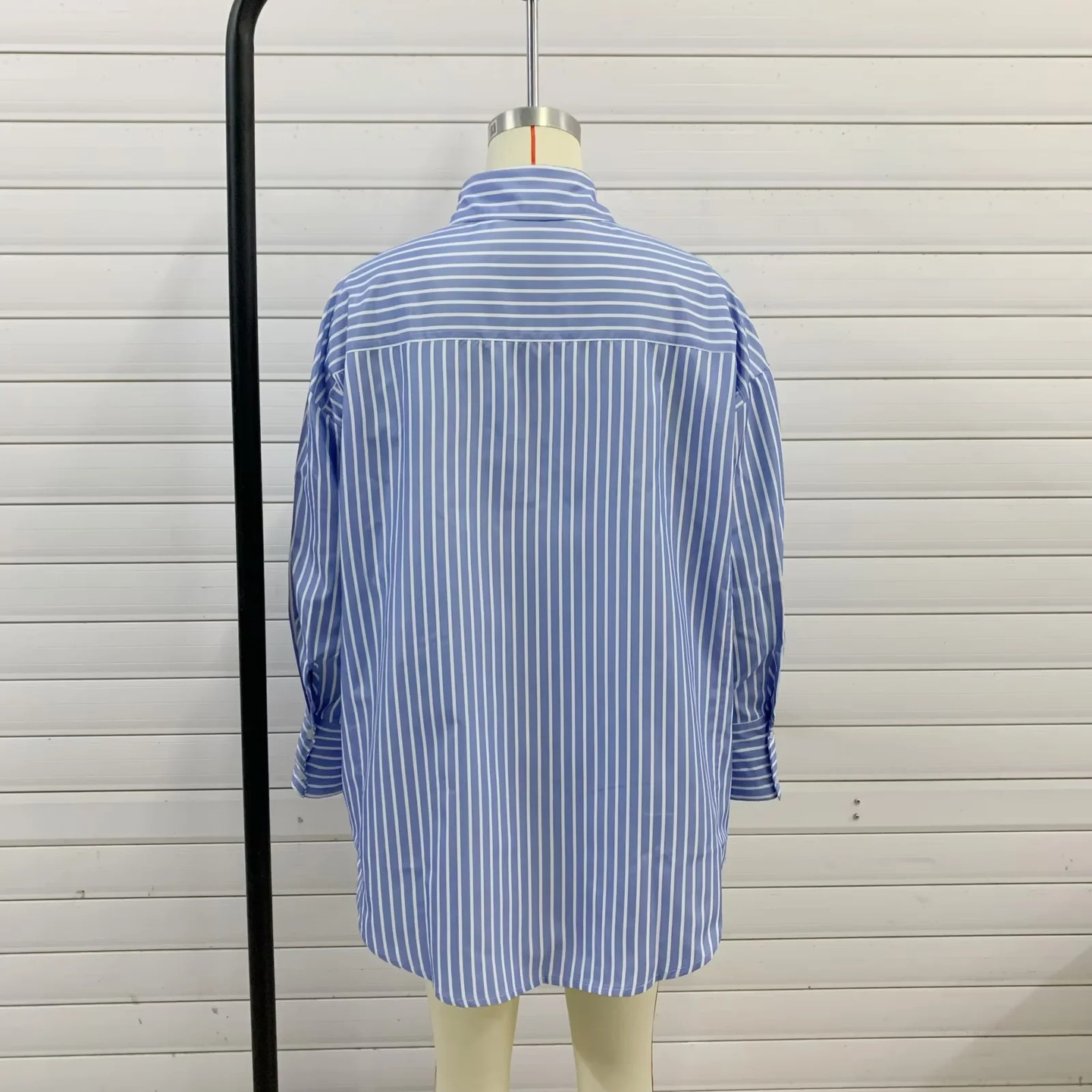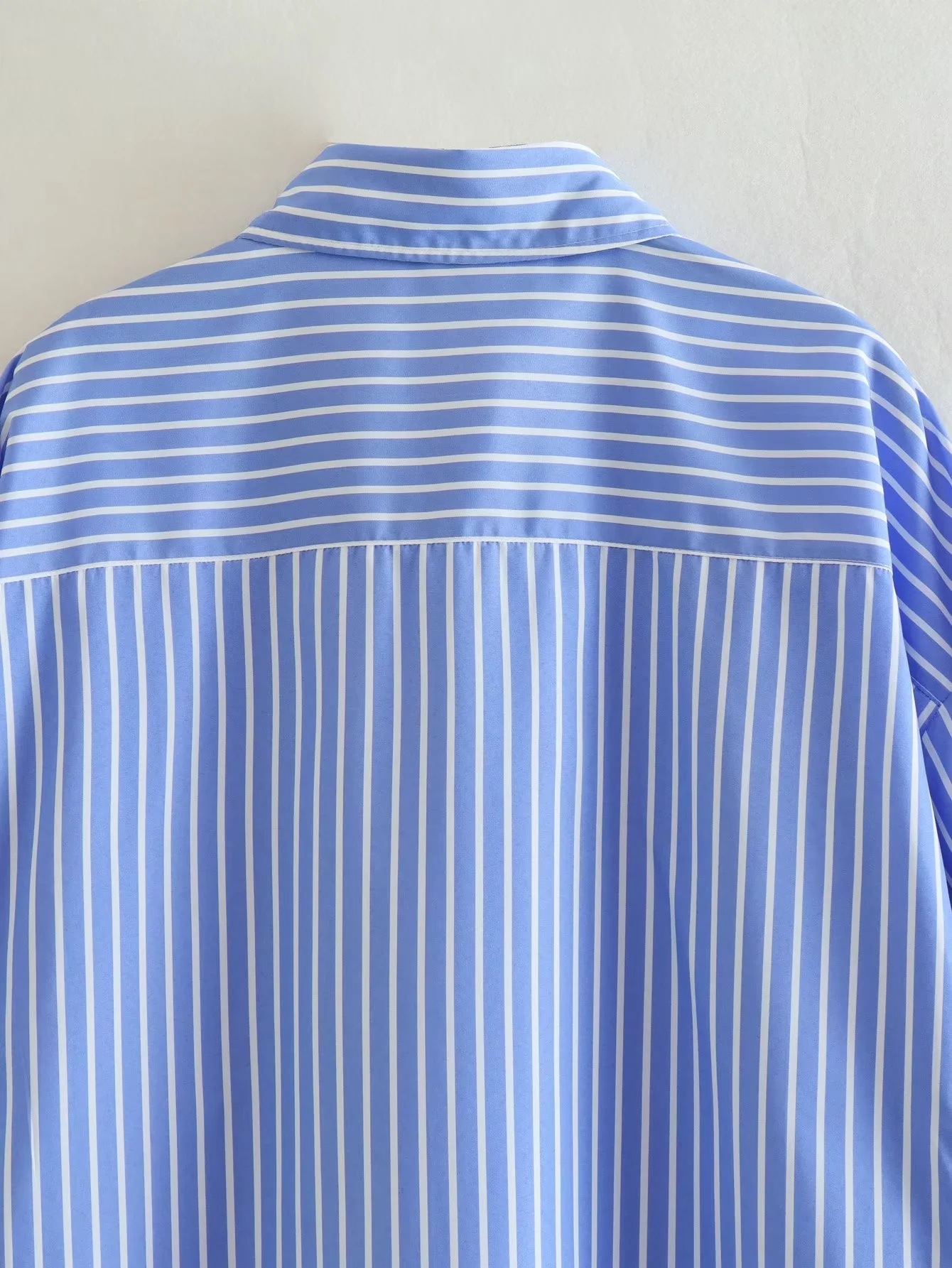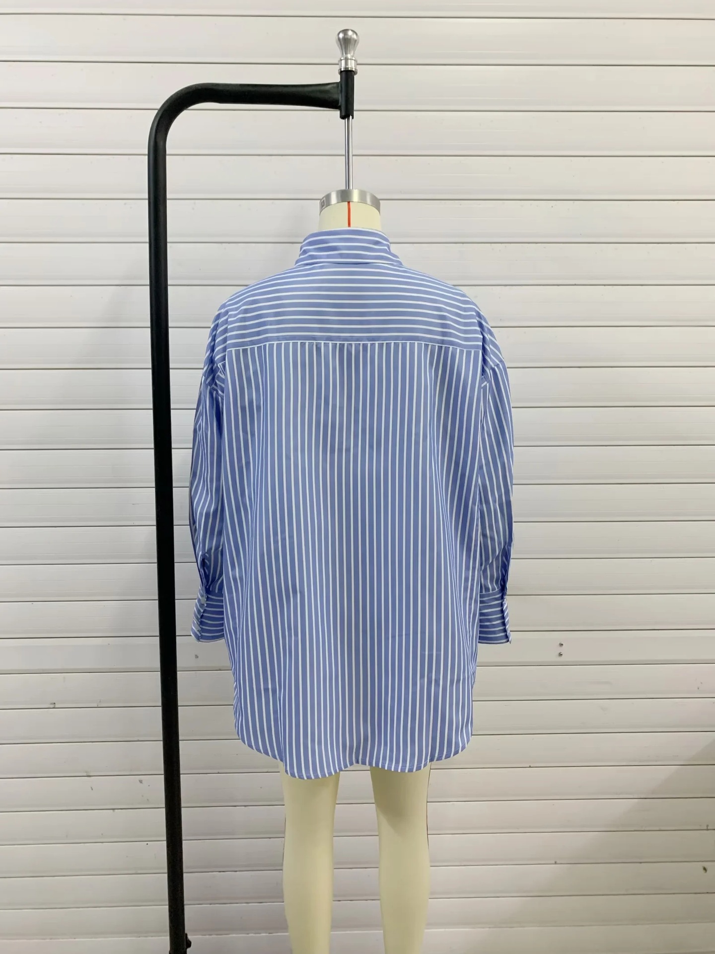 Plus Size Loose Casual Mid-length Short Front And Long Back Striped Shirt