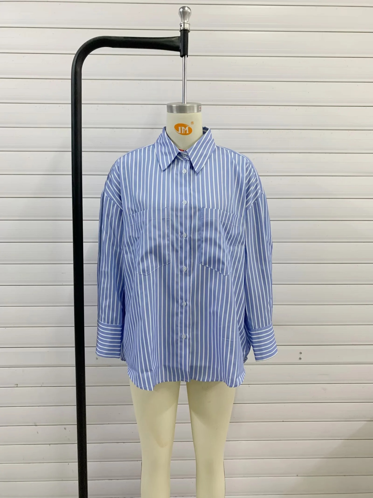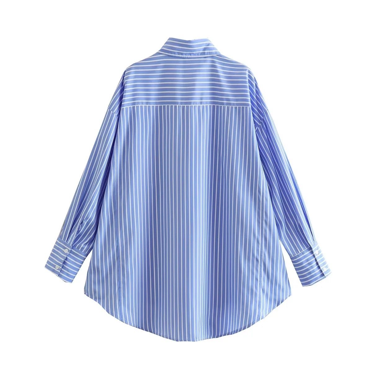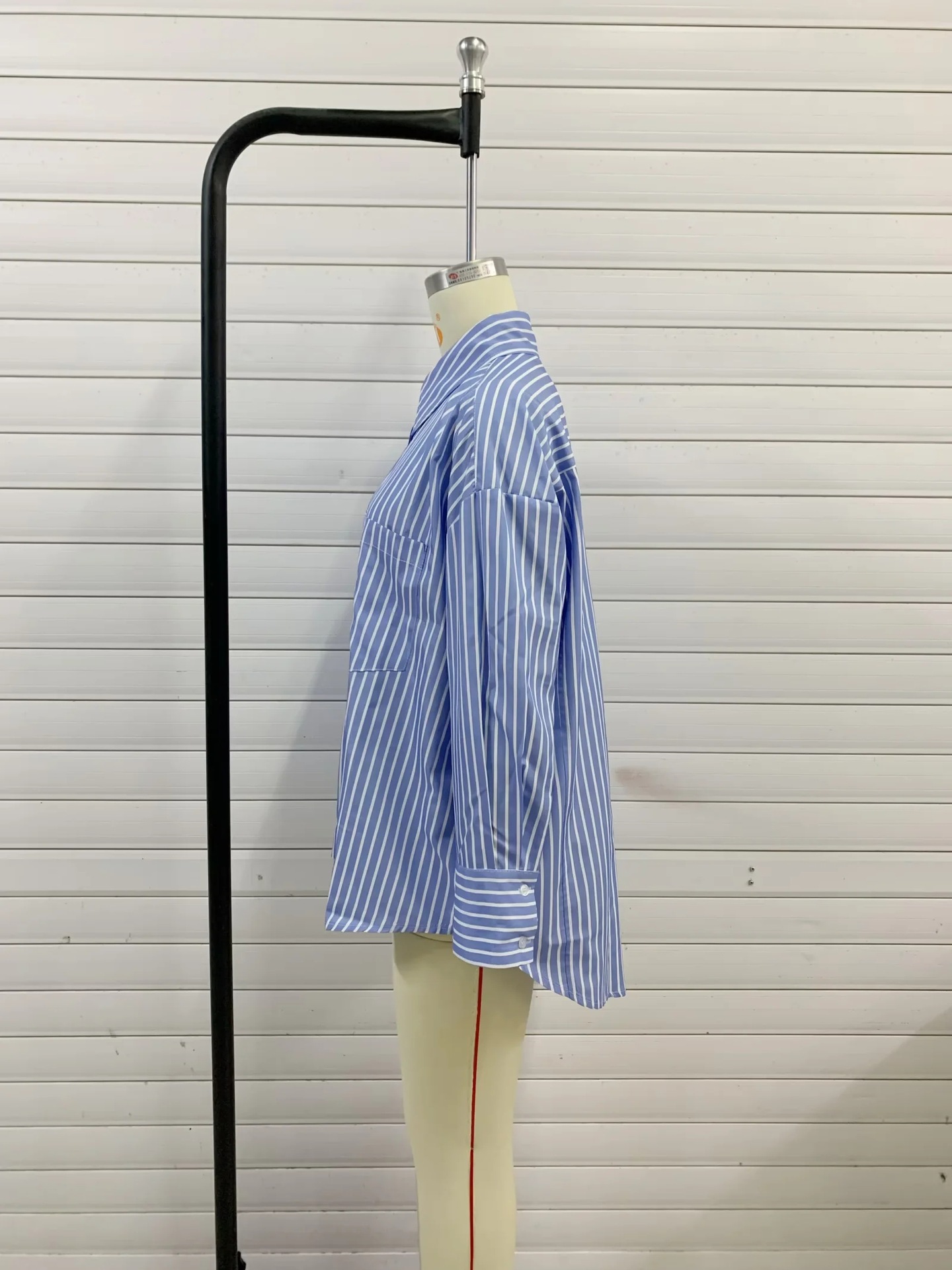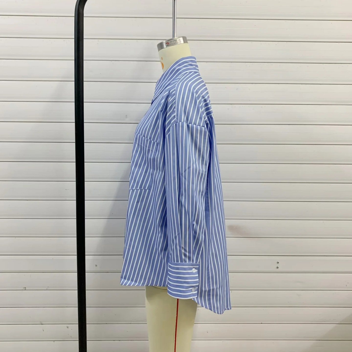 Plus Size Loose Casual Mid-length Short Front And Long Back Striped Shirt
