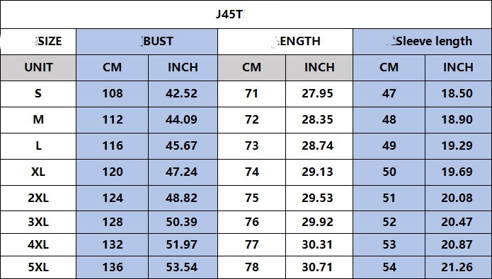 Sizes: S, M, L, XL, 2XL, 3XL, 4XL, 5XL