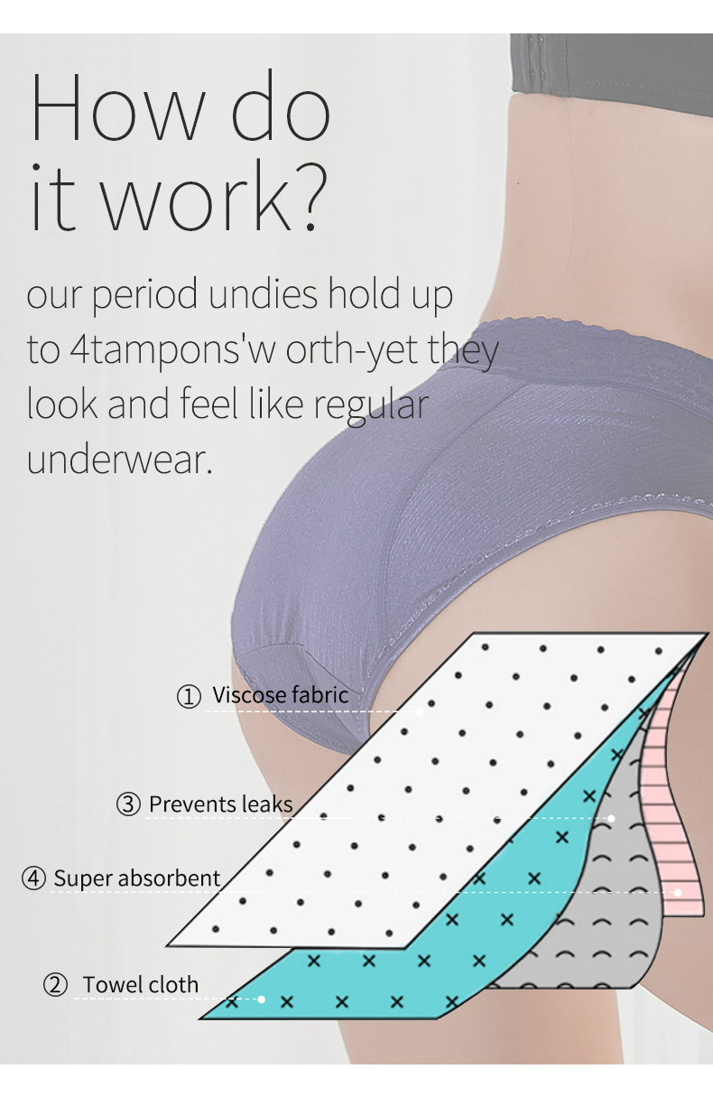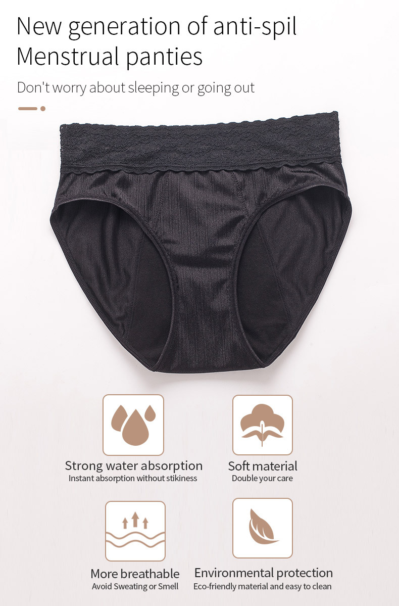 Plus Size Mid High Waist Physiological Pants Four Layers Lace
