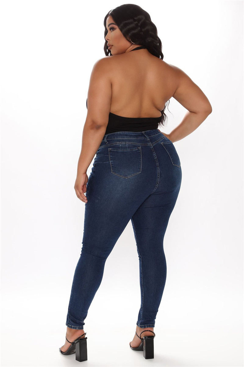 Plus Size Pencil Slim Jeans Stretch Women's Denim Pants Blue
