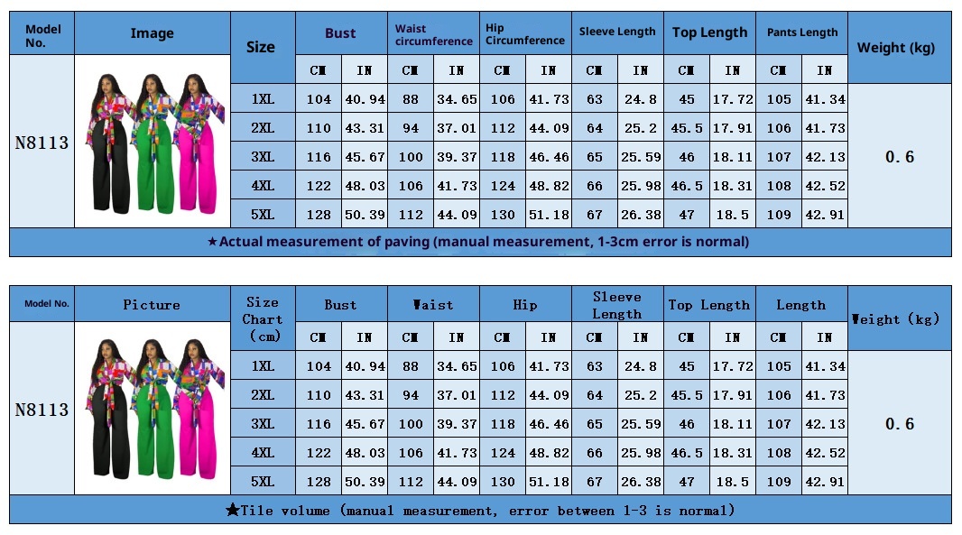 Sizes: 1XL, 2XL, 3XL, 4XL, 5XL