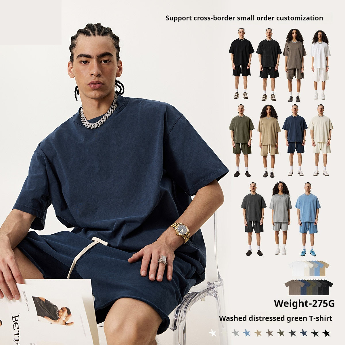 Color: white, washed gray apricot, washed light gray, smalt, washed khaki, washed coffee, washed sapphire blue, washed army green, washed dark gray, fried snowflake, black, OVERSIZE