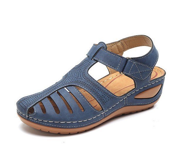 Plus Size Round Toe Wedge Heel Velcro Sandals