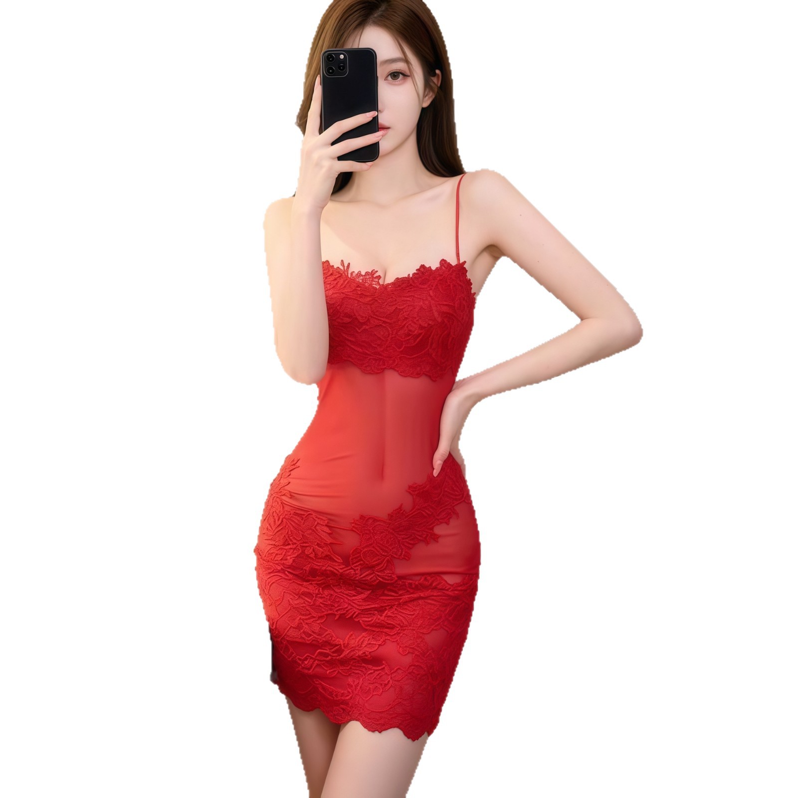 Plus-size Sexy French Lace Camisole Nightdress For Layering