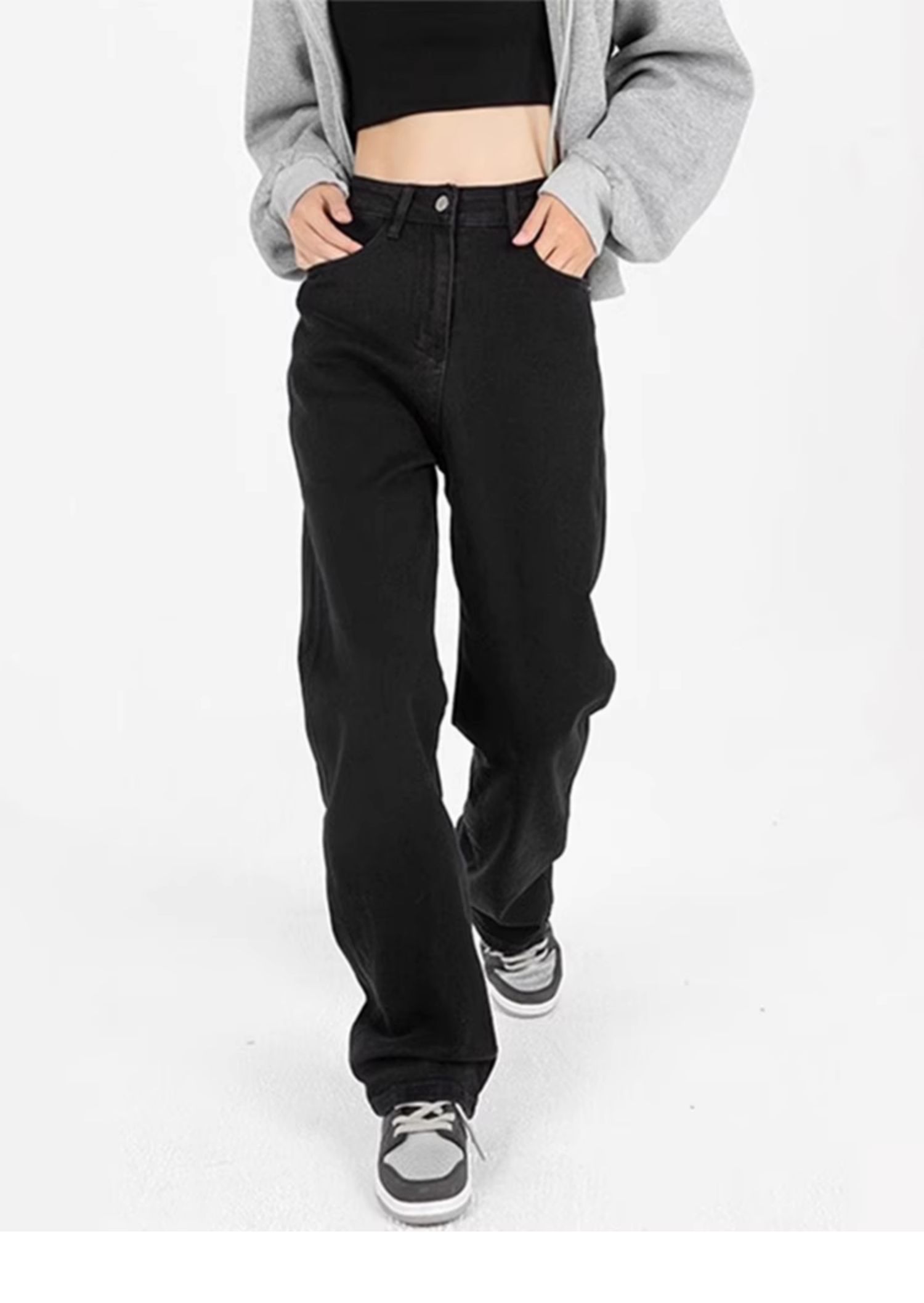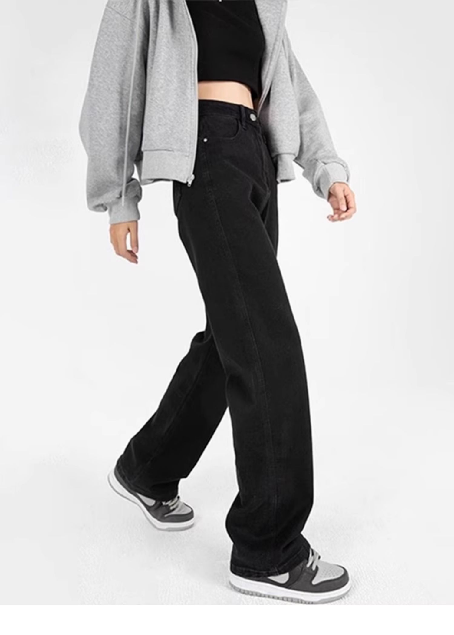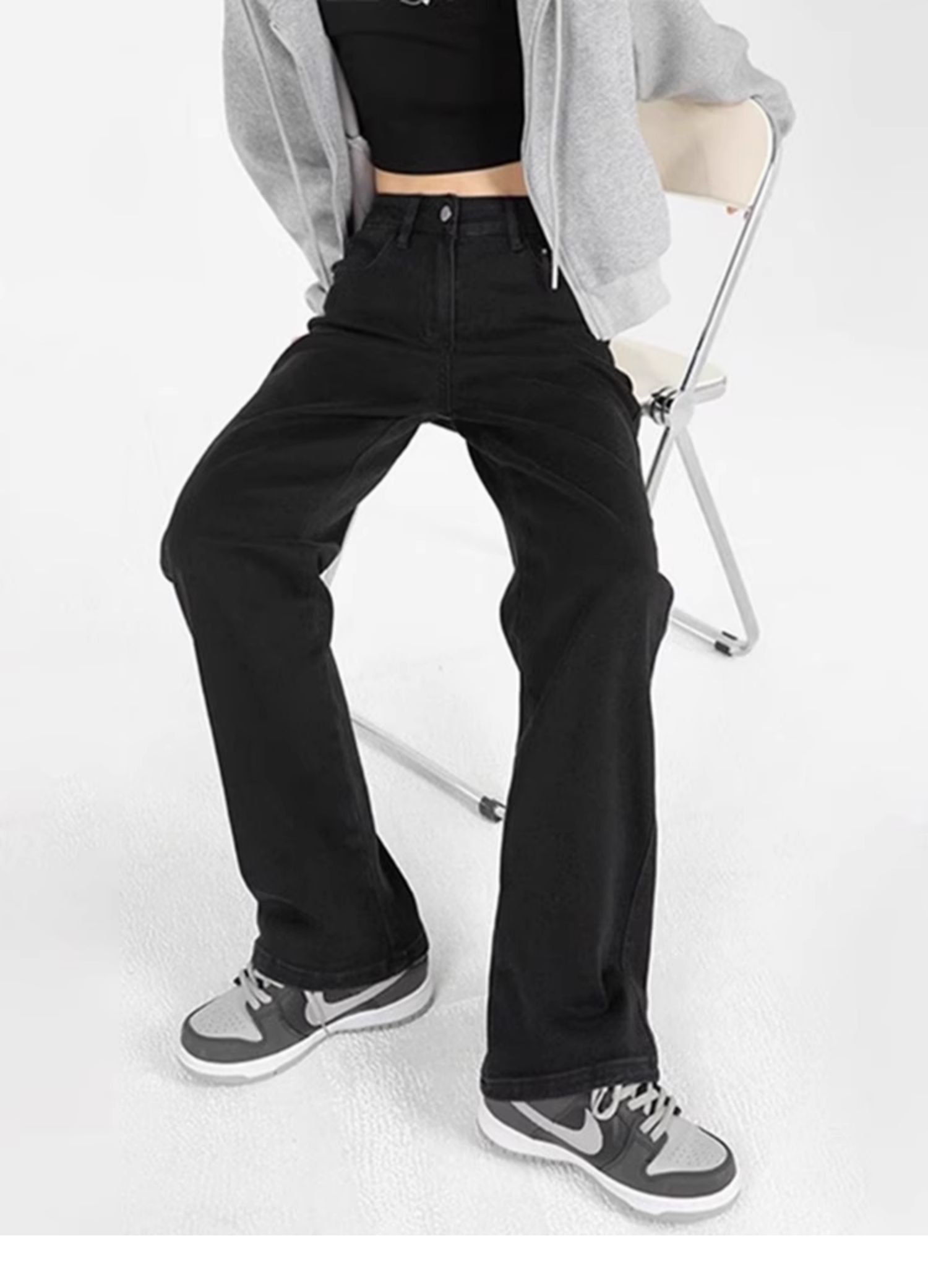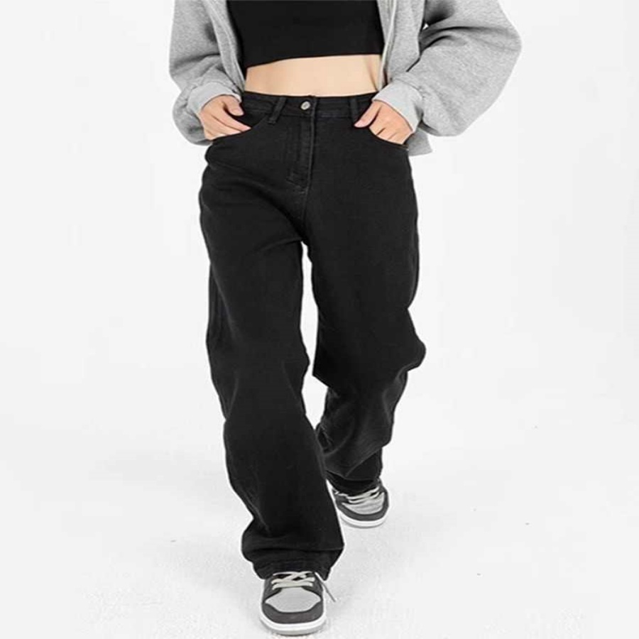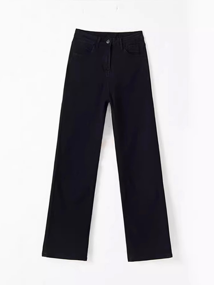 Plus Size Straight Black Jeans High Waist Wide Leg Pants