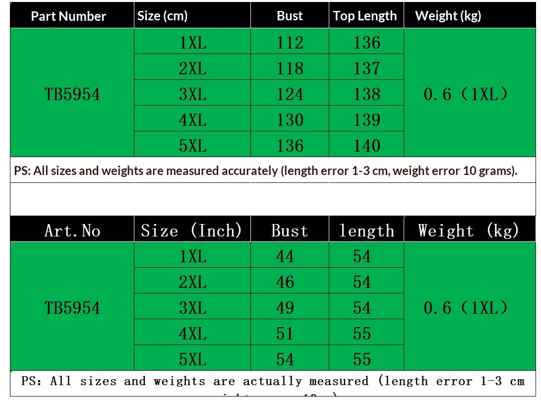 Sizes: XL, 2XL, 3XL, 4XL, 5XL