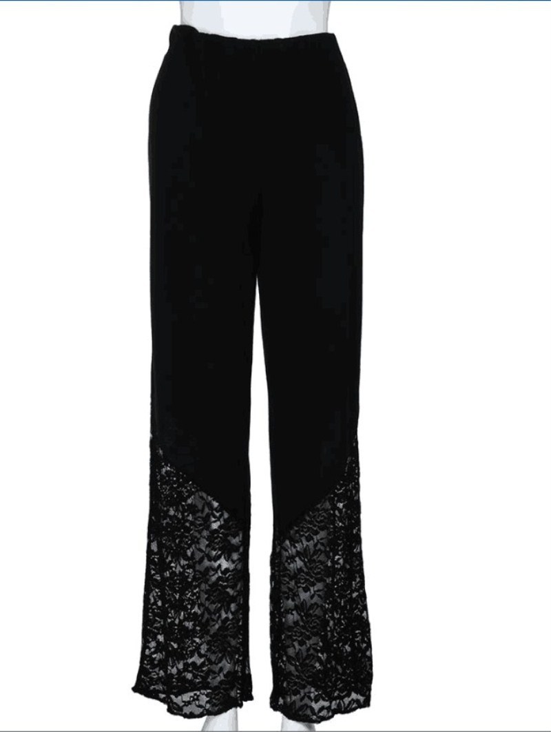Plus Size Women's Casual Stitching Lace Plump Girls Wide-leg Pants